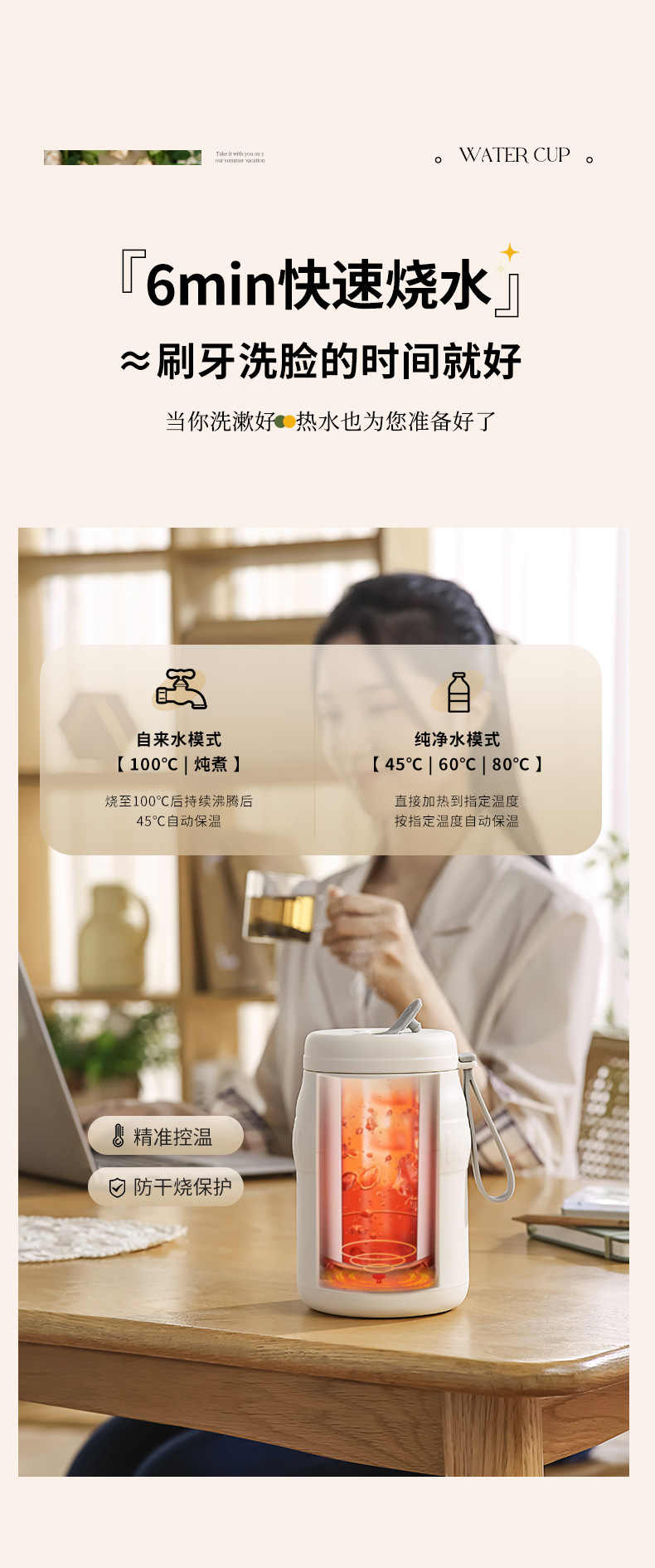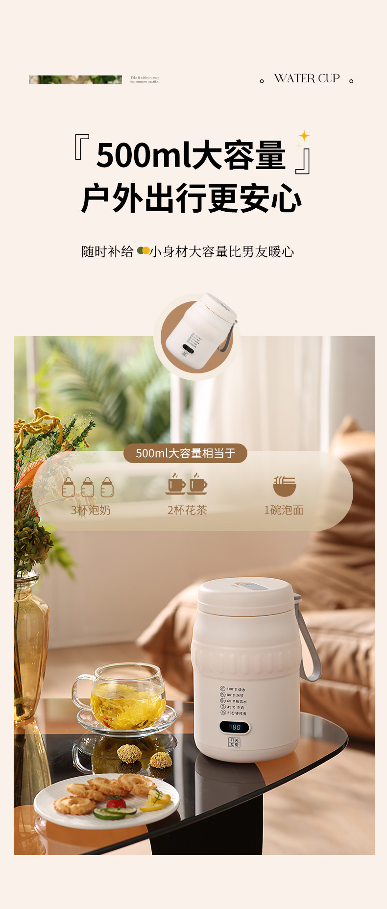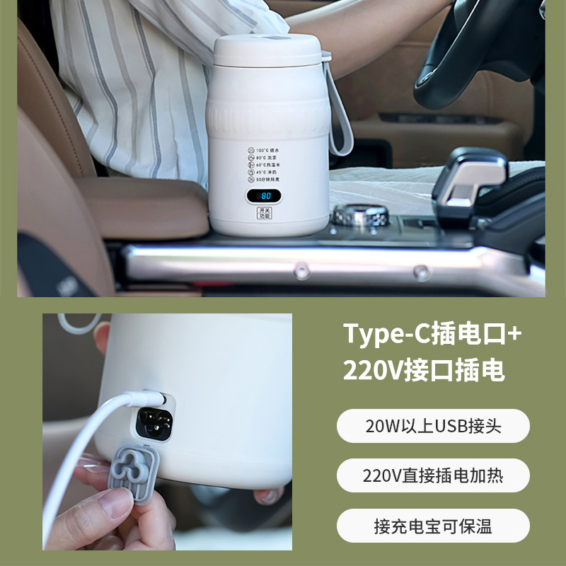 恒温冲奶便携式电热杯 小型保温外出旅行一体全自动type-c烧水杯