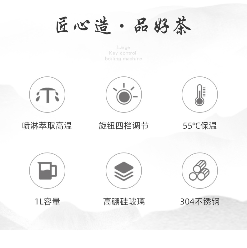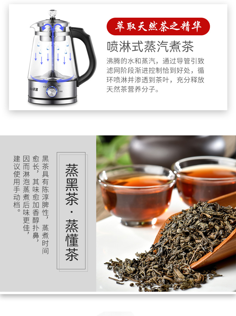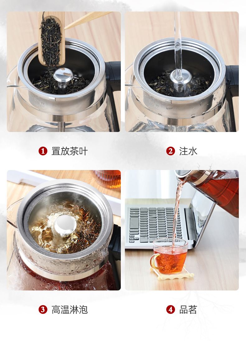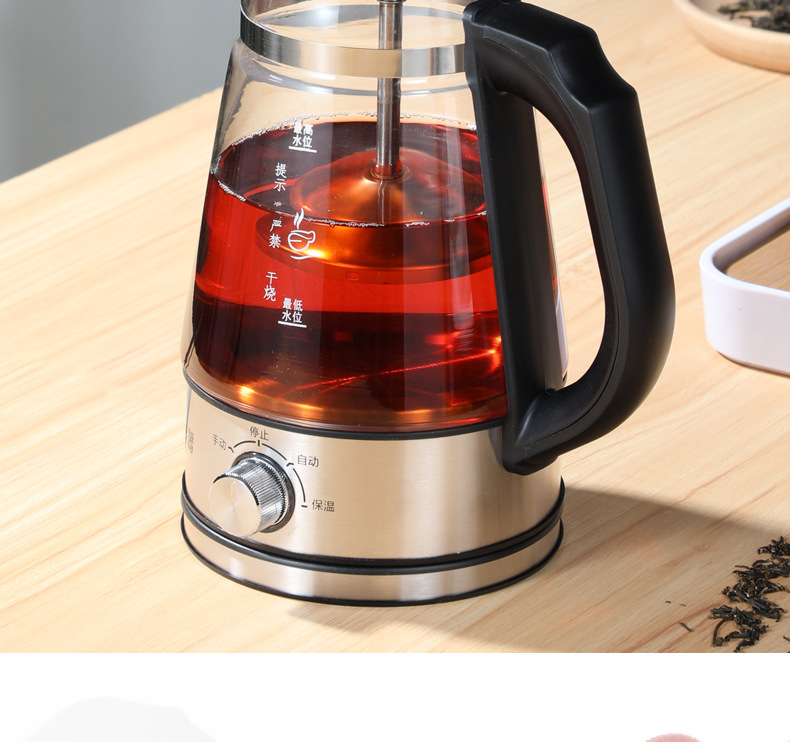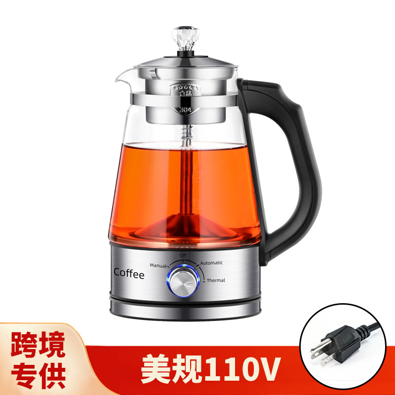 110V美规跨境全自动家用煮茶器蒸汽喷淋煮黑茶壶玻璃电茶壶咖啡壶