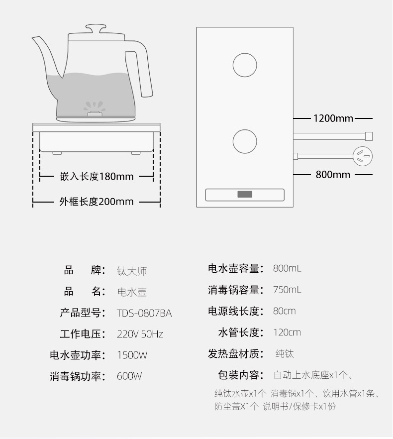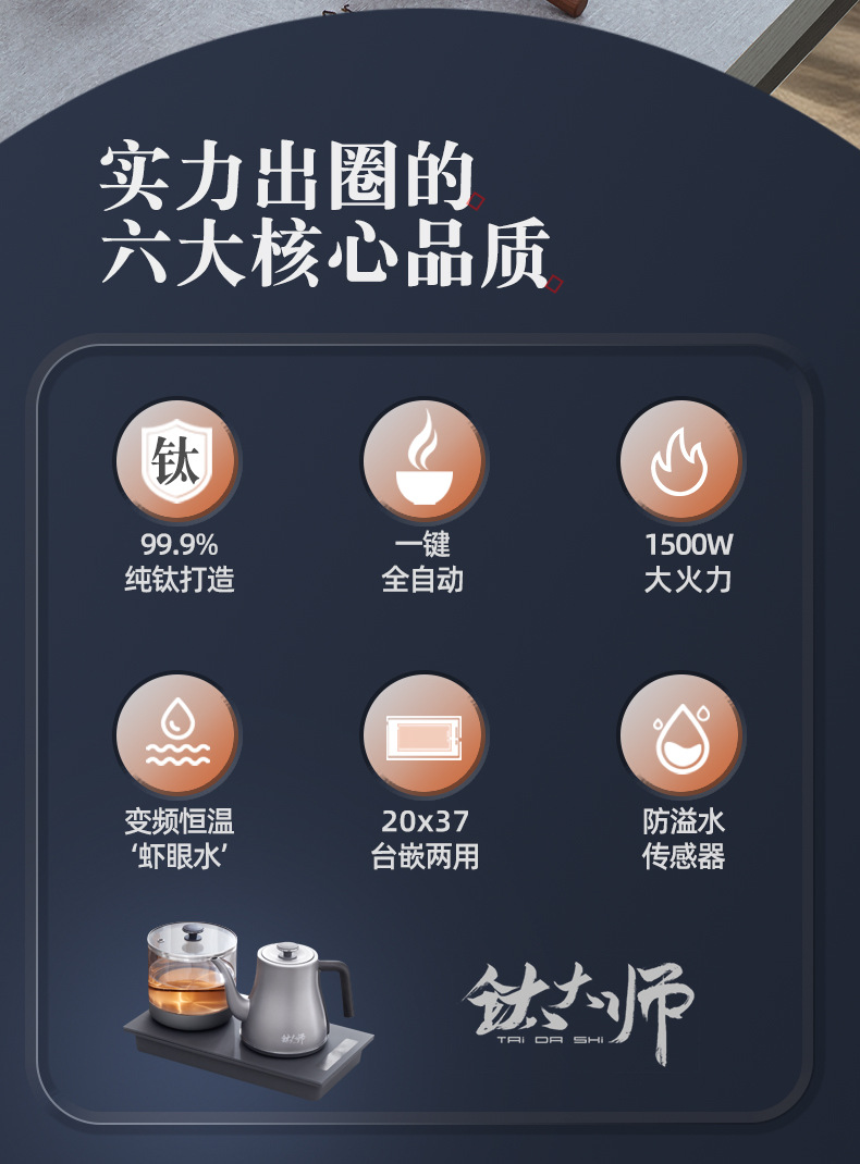 纯钛全自动上水电热烧水壶恒温一体嵌入式功夫茶台茶桌泡茶专用