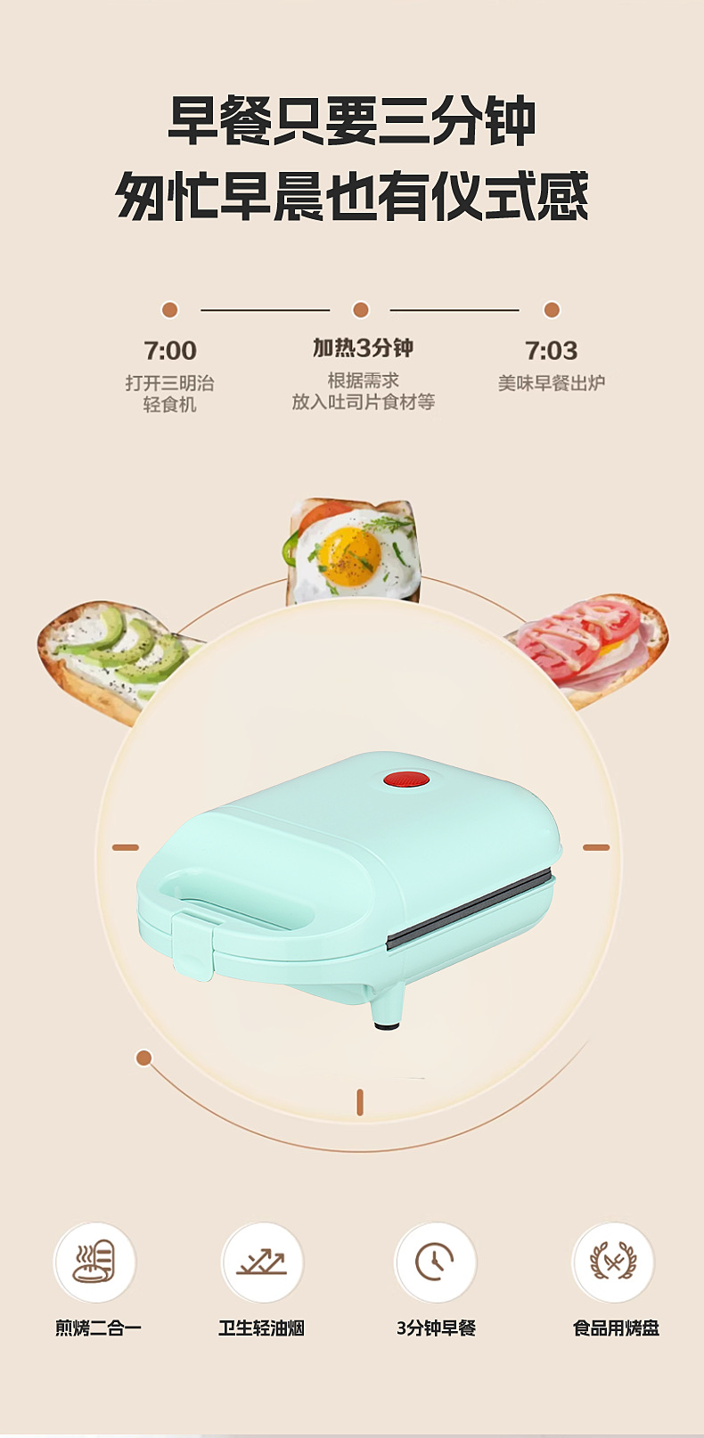 烘烤机三明治机小型家用网红轻食早餐机面包机三文治电饼铛吐司机