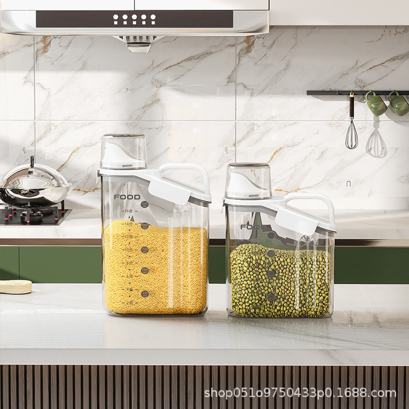 塑料透明密封罐日式手提储米桶防潮家用厨房五谷带量杯杂粮罐批发