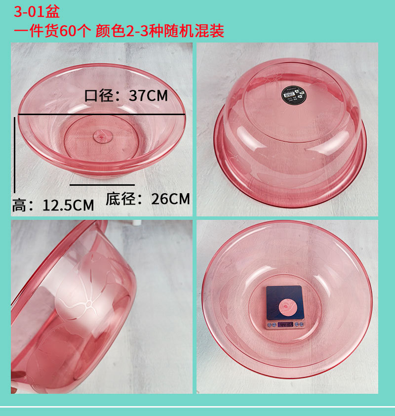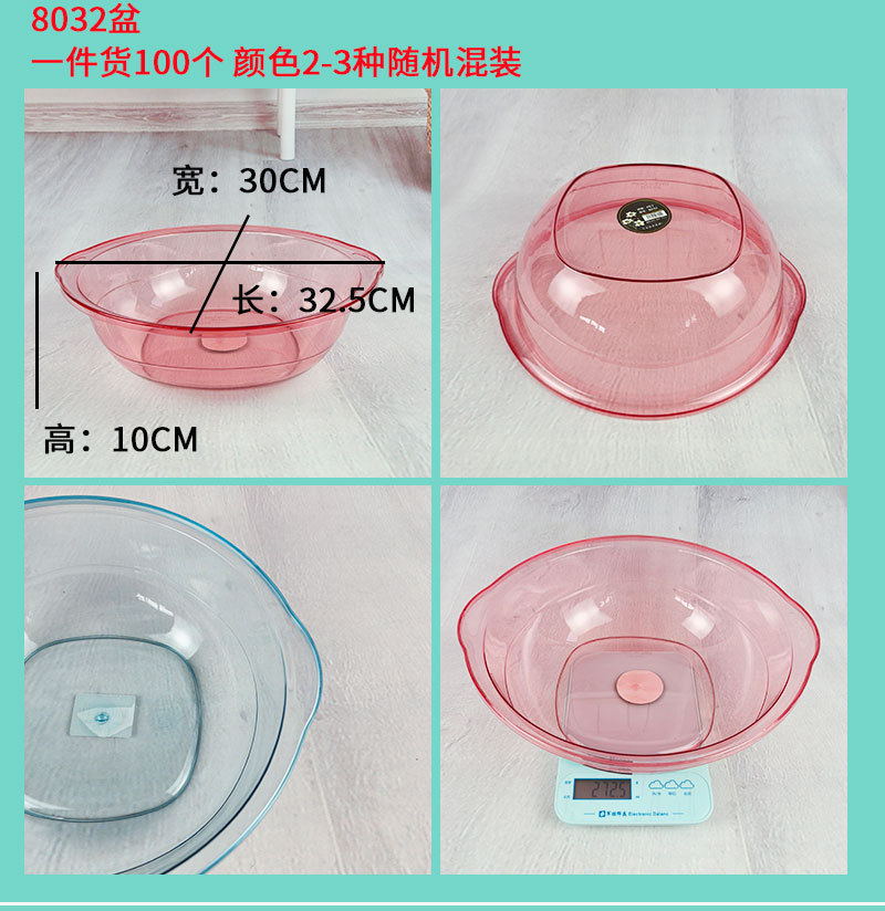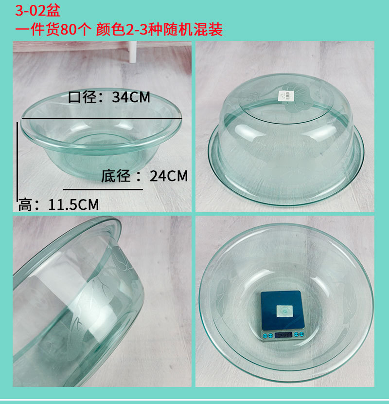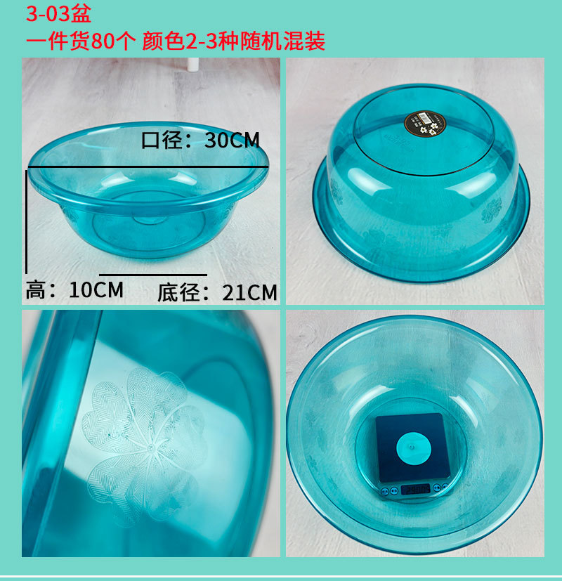 生活日用百货家用 pet塑料盆圆形双耳透明脸盆加厚学生洗衣用盆子
