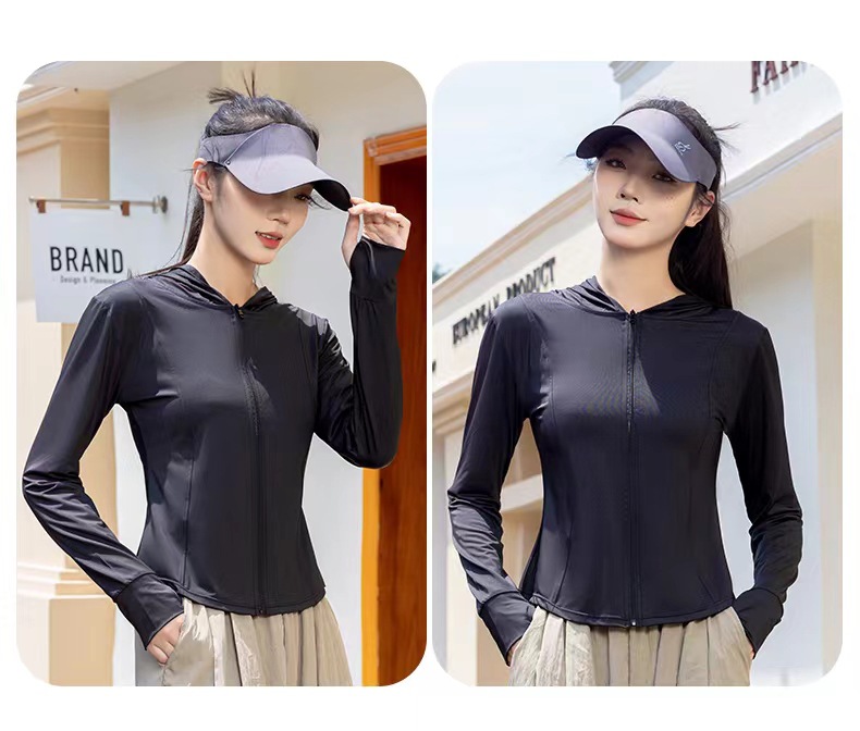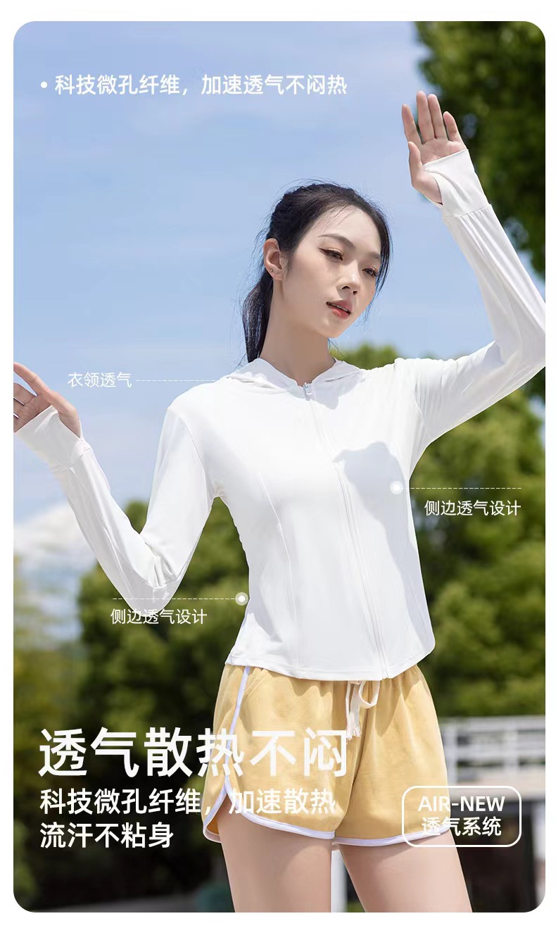 修身瑜伽防晒衣女款夏季2024新款防紫外线薄款冰丝透气防晒服锦纶