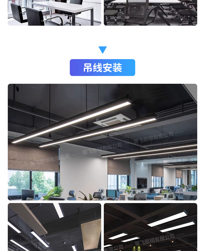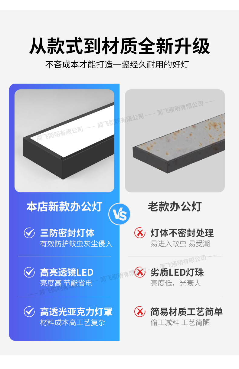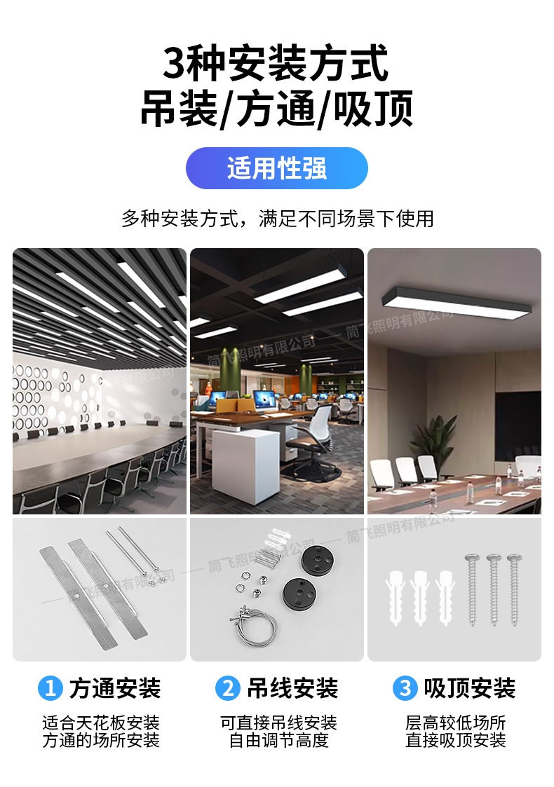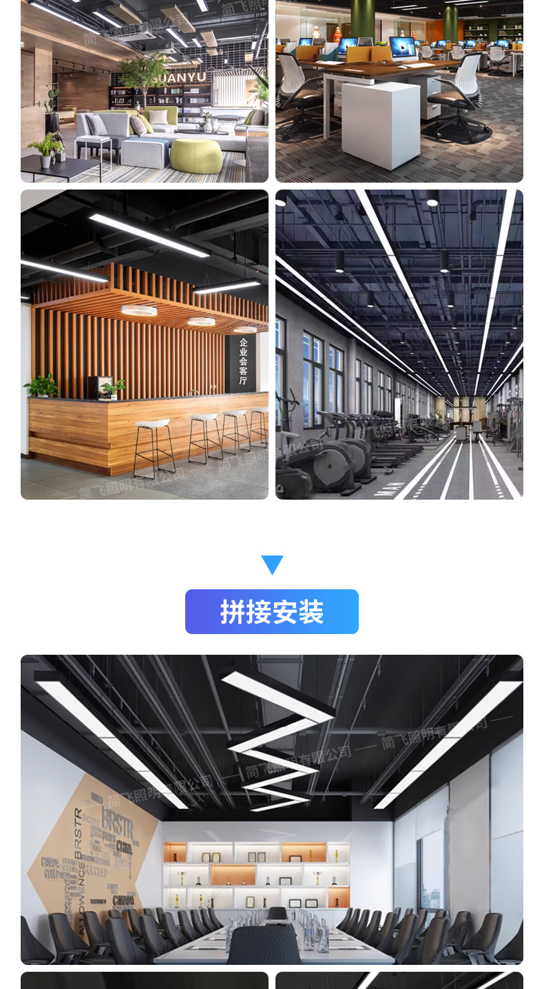 led超亮办公灯长条灯吊线专用灯超市餐厅灯条形灯商用一字方通灯