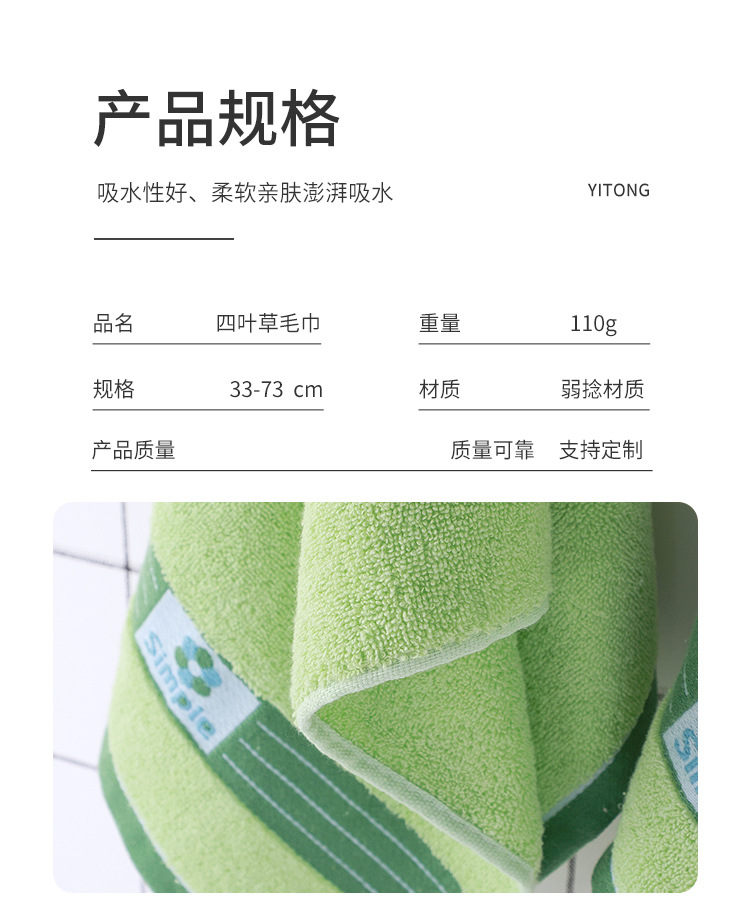 四叶草棉毛巾柔软吸水速干毛巾家用成人加厚面巾亲肤洗脸巾批发