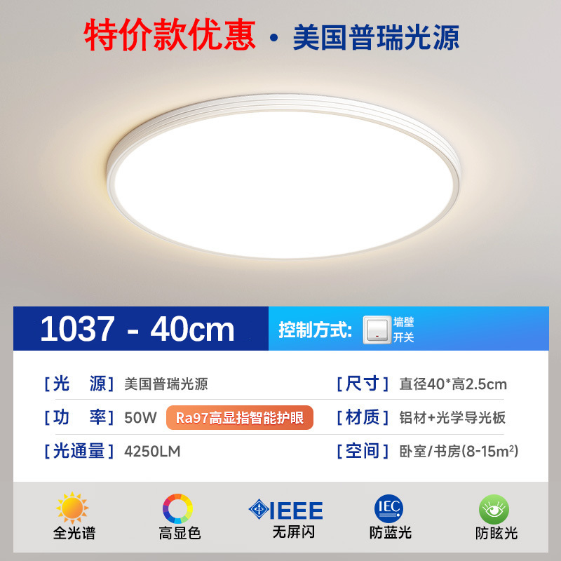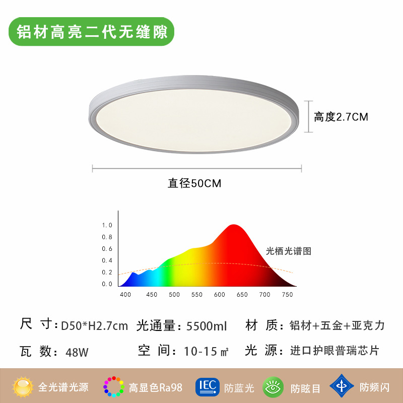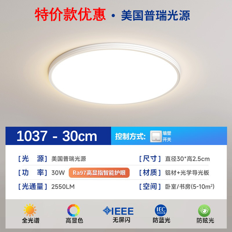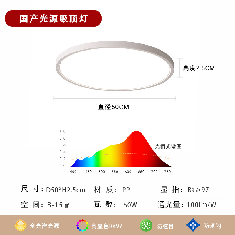 超薄2.5cm吸顶灯led全光谱护眼客厅简约风儿童房卧室灯中山灯具