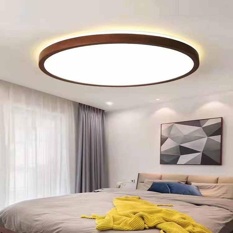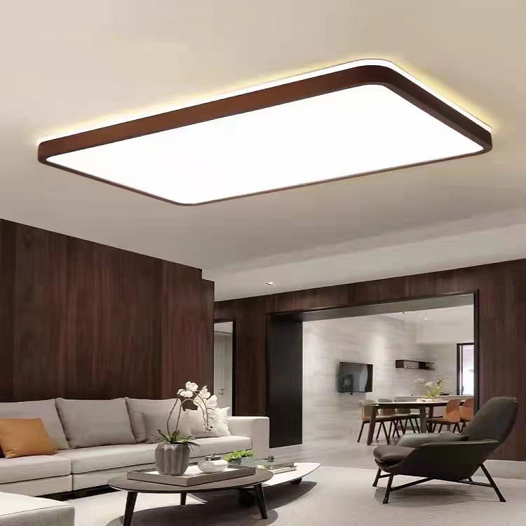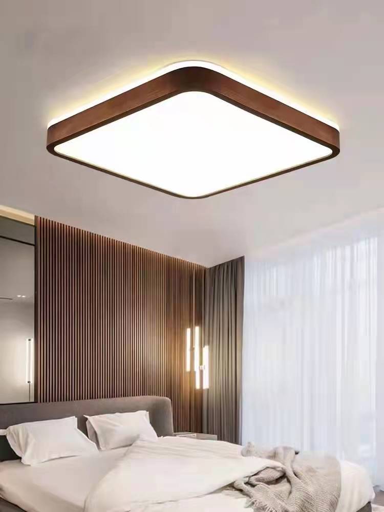 简约新中式长方形客厅吸顶灯实木米家语音智能卧室灯胡桃木灯具灯