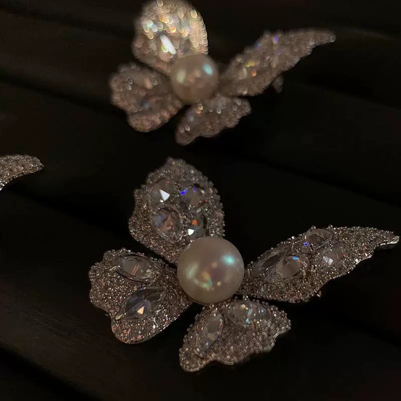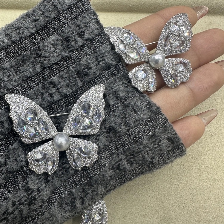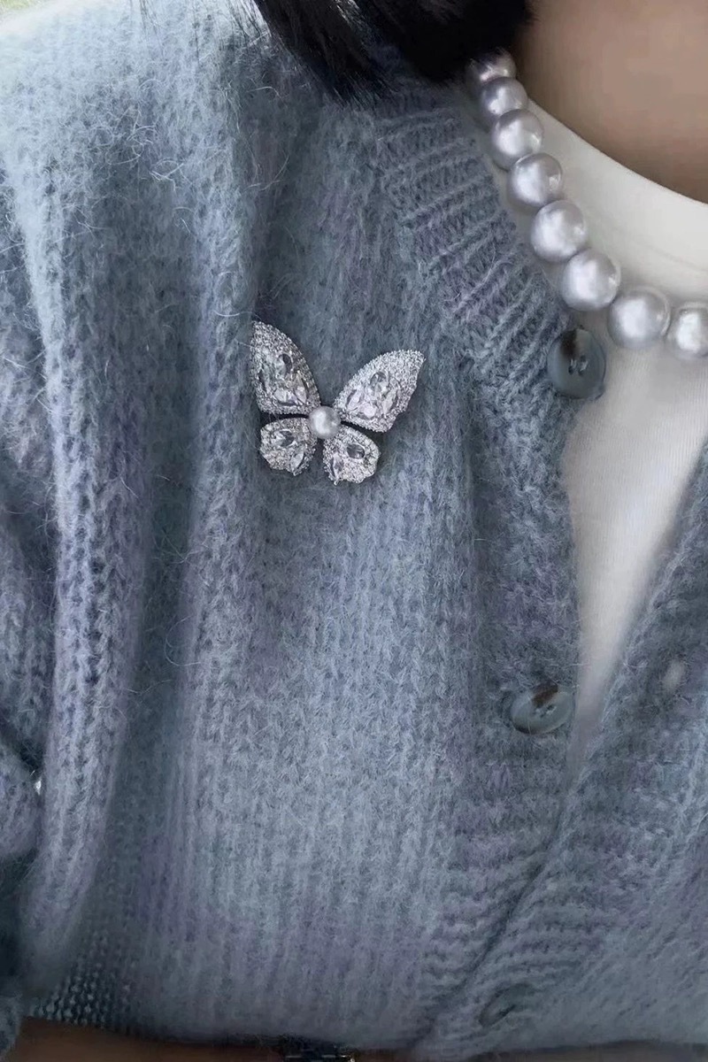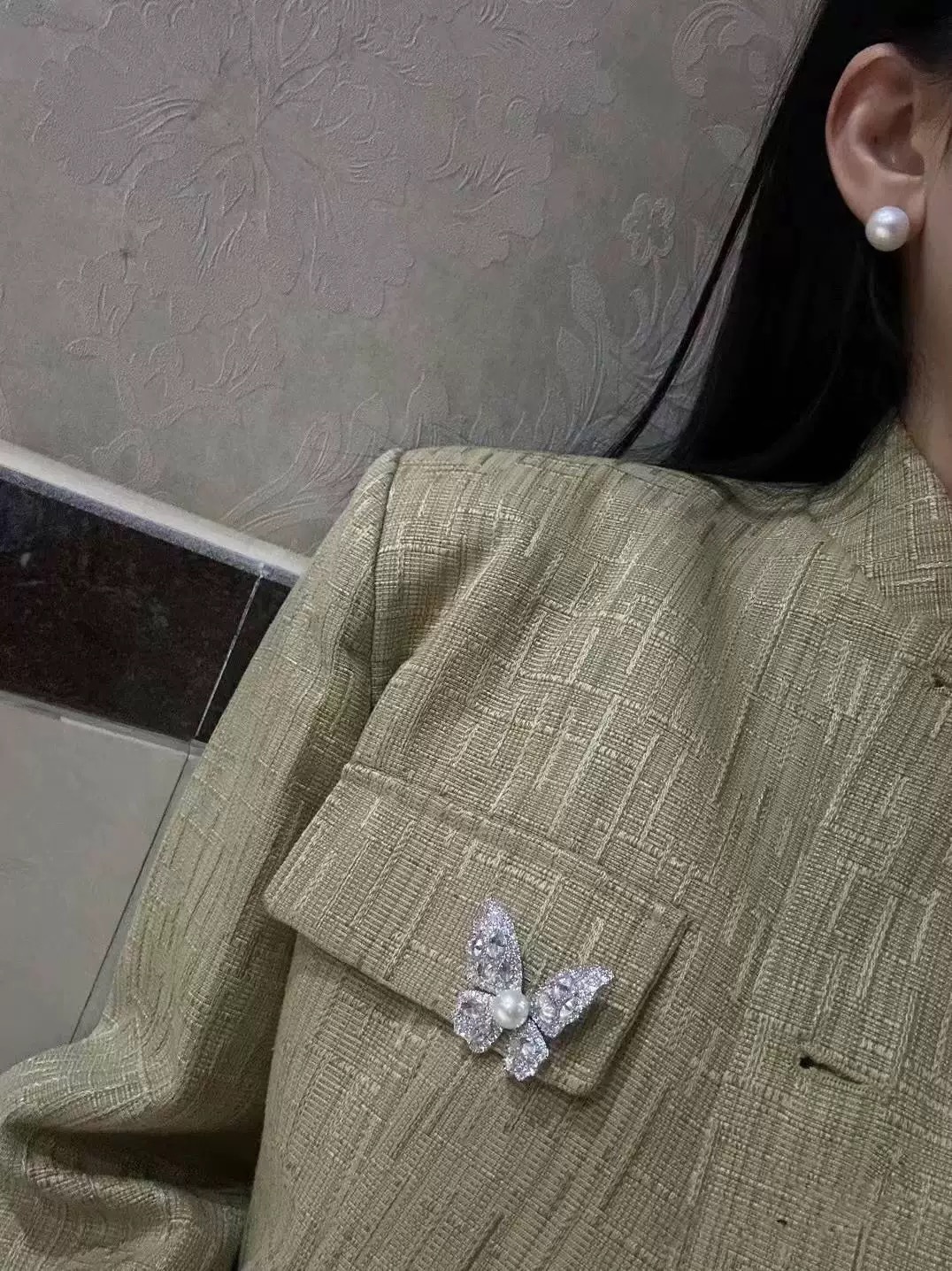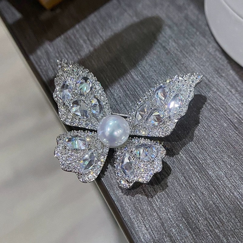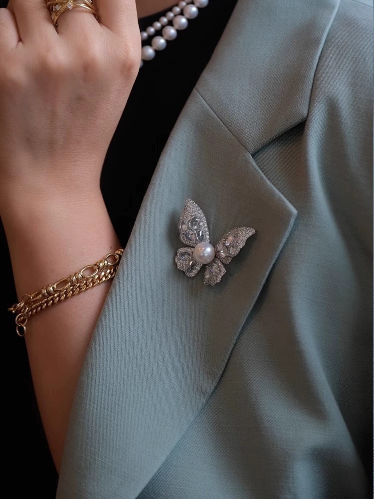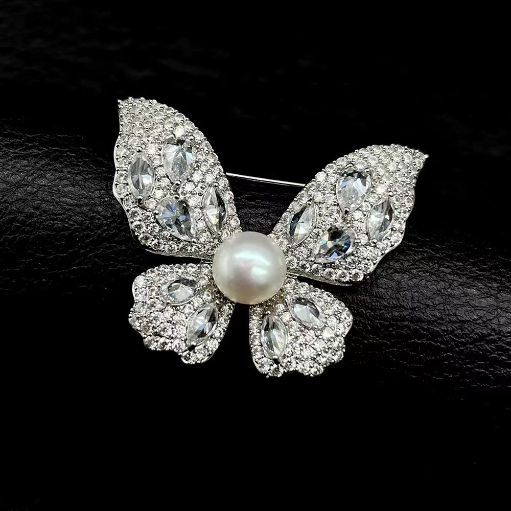 锆石蝴蝶胸针高端高档小众珍珠高级感胸花小香风别针衣饰配饰批货