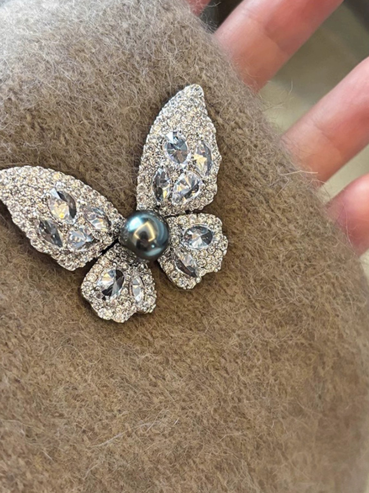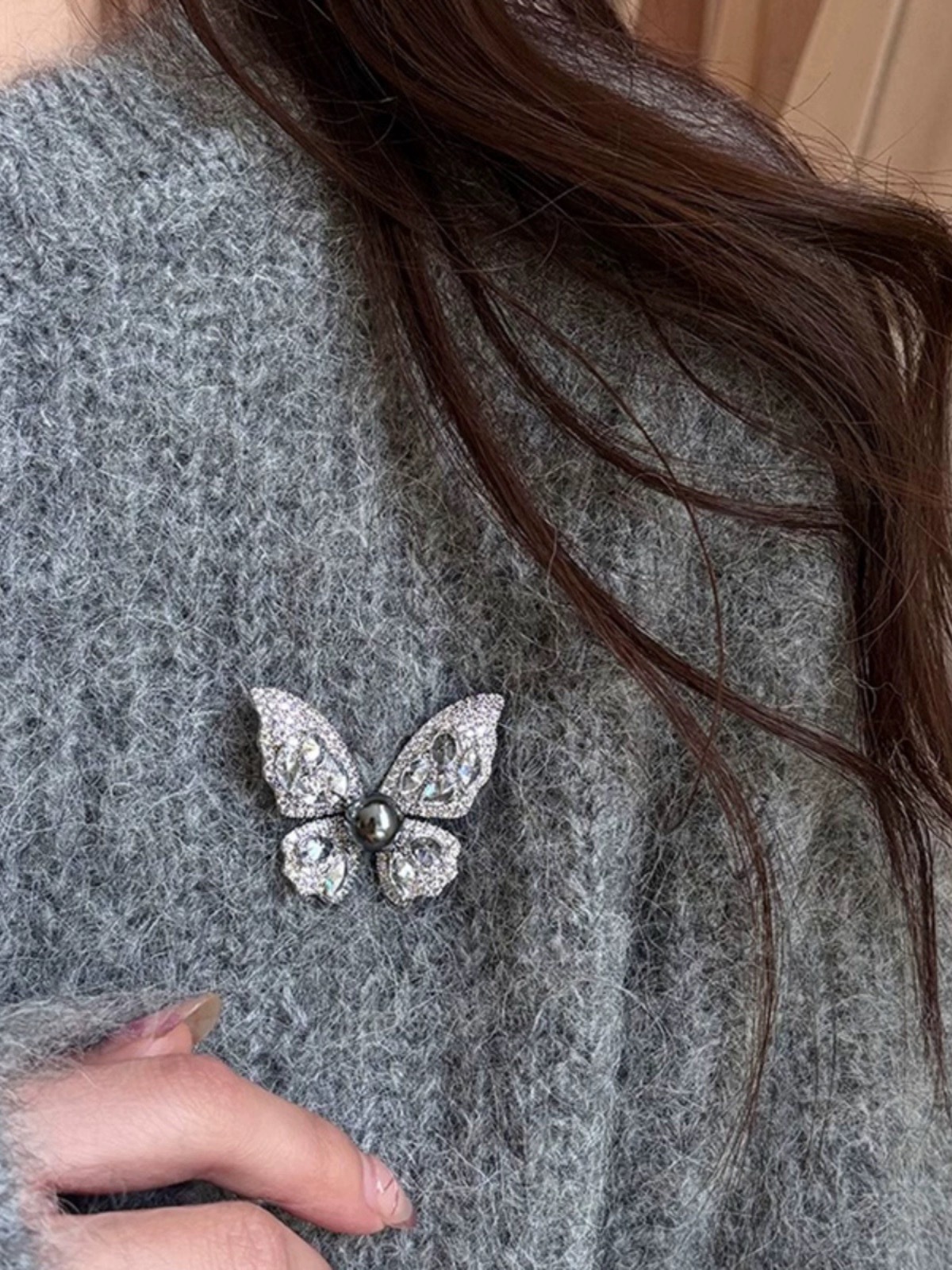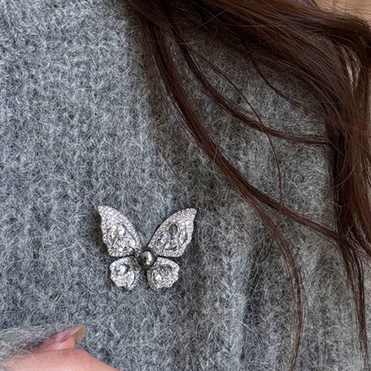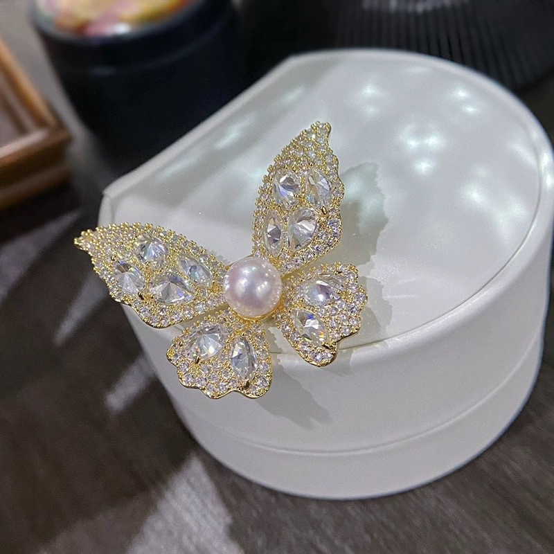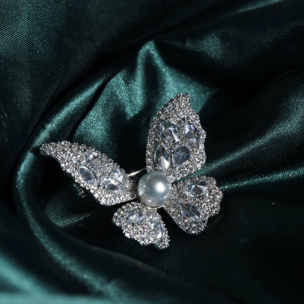 锆石蝴蝶胸针高端高档小众珍珠高级感胸花小香风别针衣饰配饰批货
