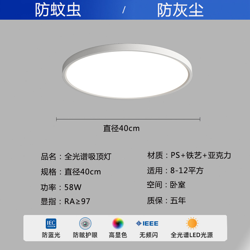 全光谱吸顶灯高亮护眼成套灯饰led灯具客厅灯卧室灯超薄款吸顶灯