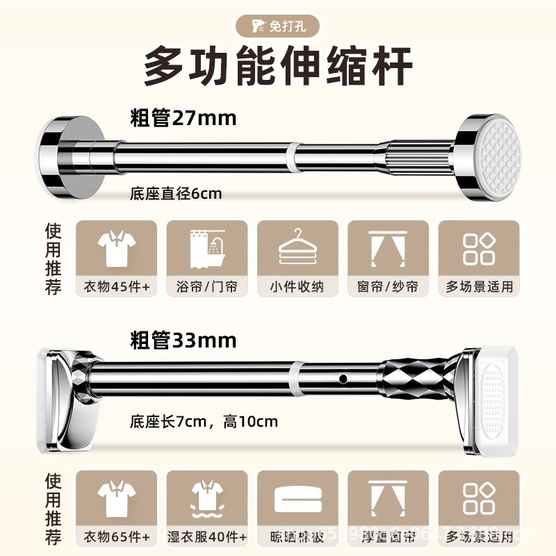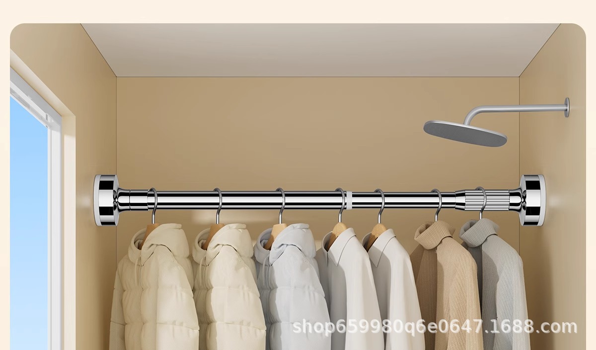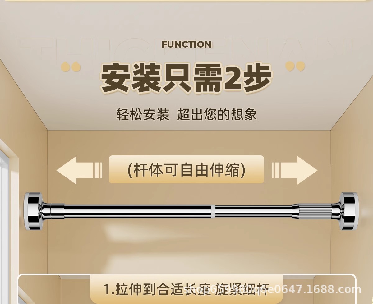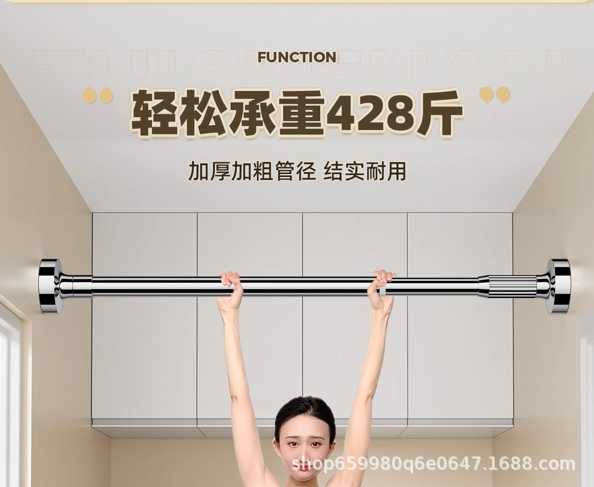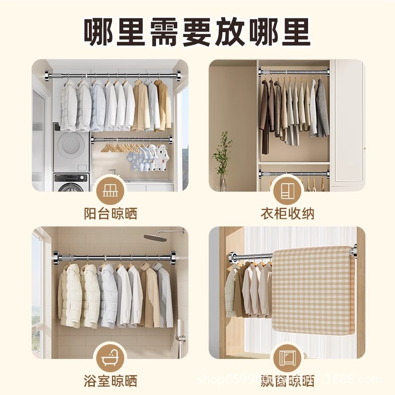 伸杆免打孔晾衣杆衣柜挂衣杆阳台卧室窗帘杆浴室浴帘杆多功能