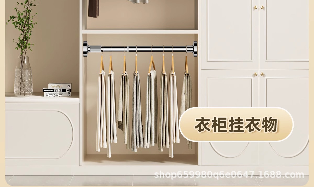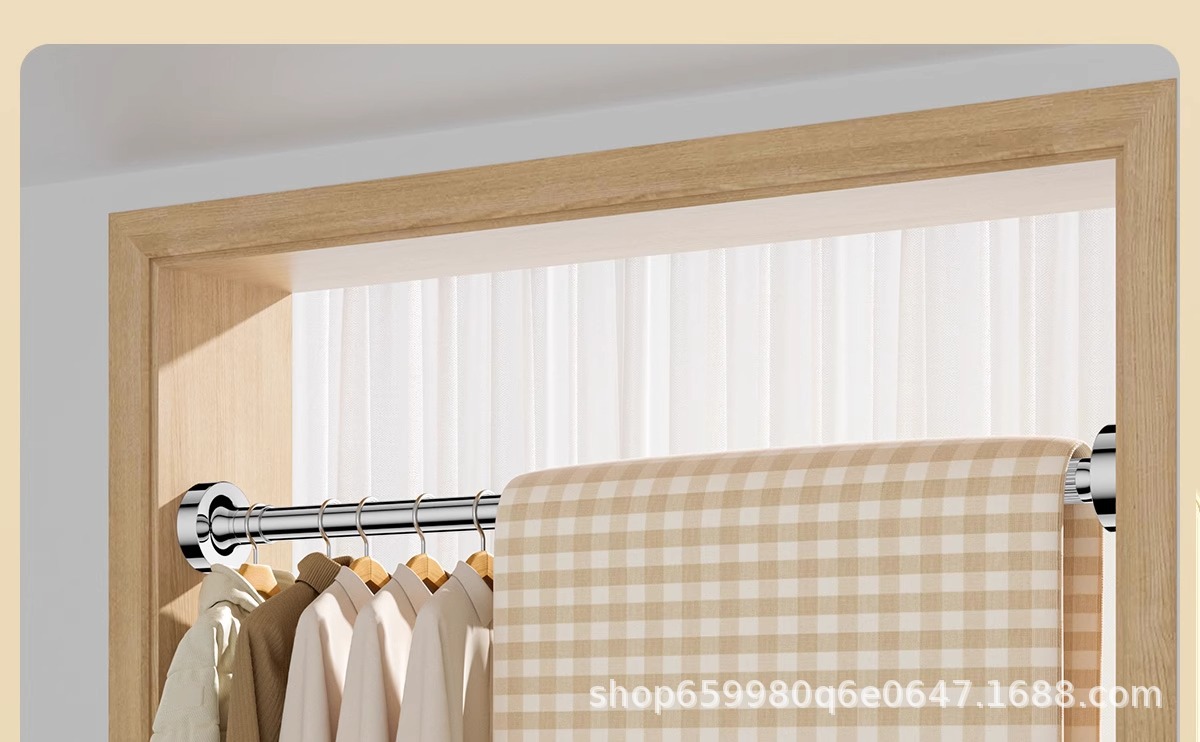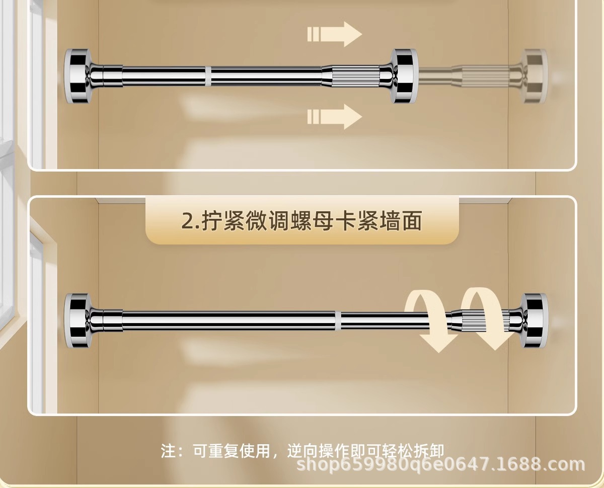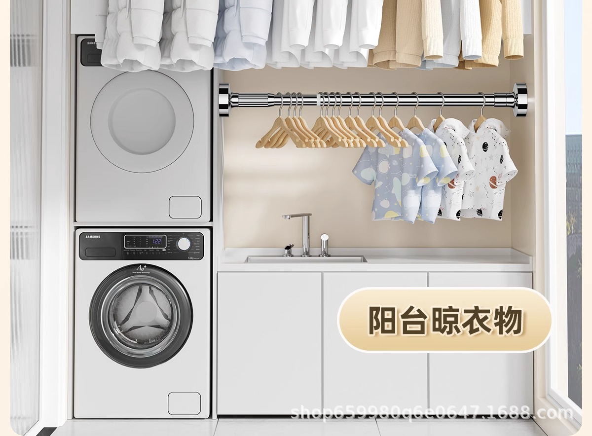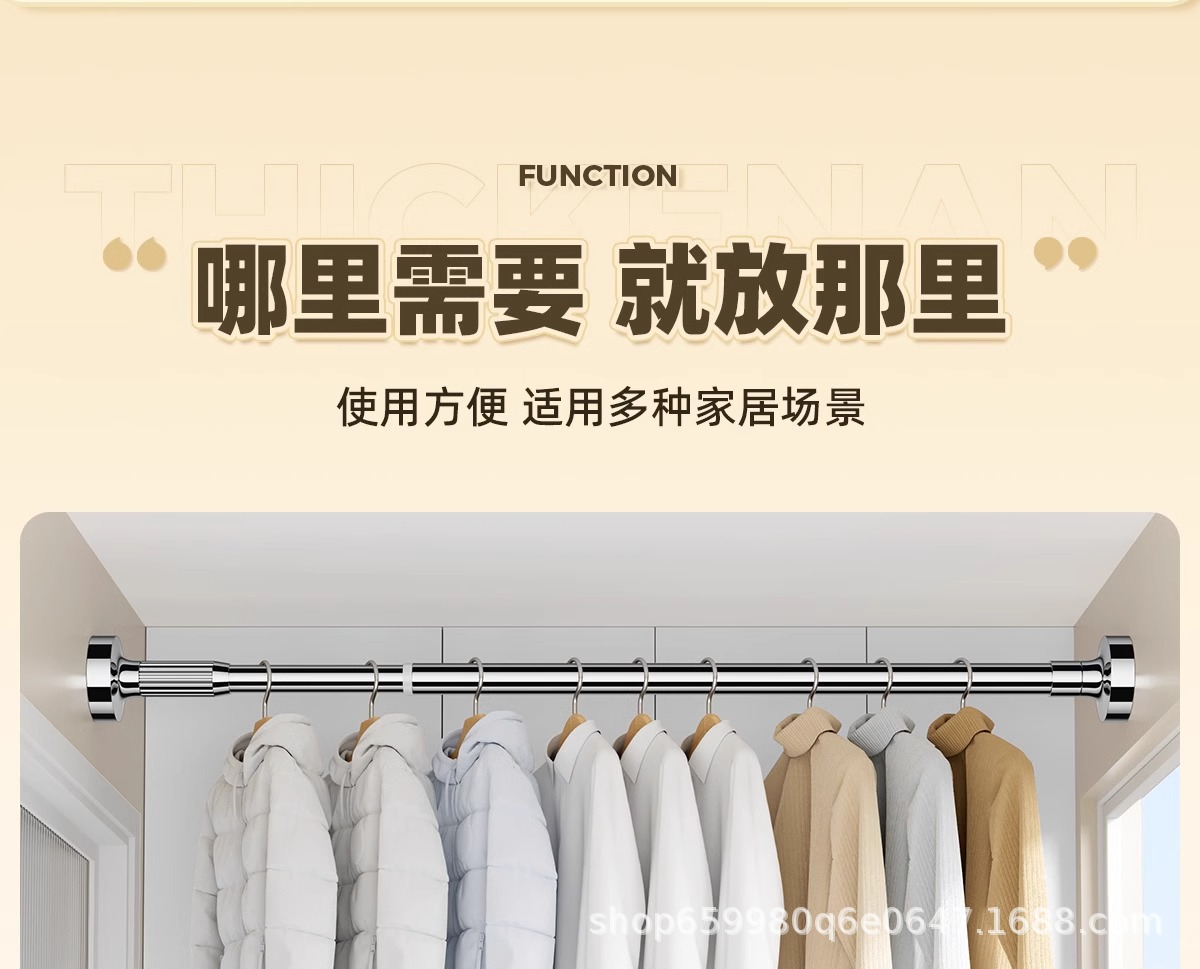 伸杆免打孔晾衣杆衣柜挂衣杆阳台卧室窗帘杆浴室浴帘杆多功能
