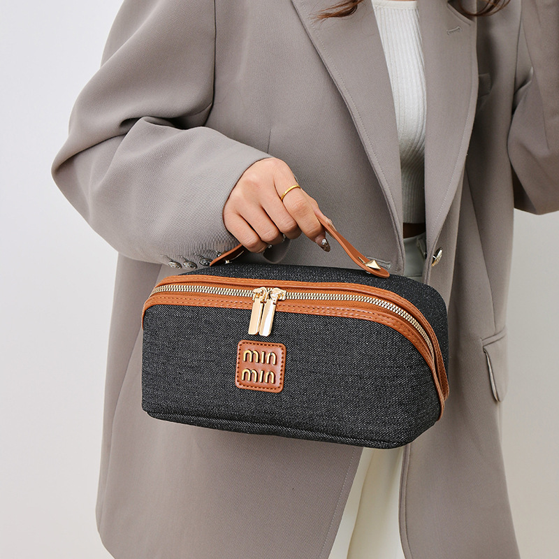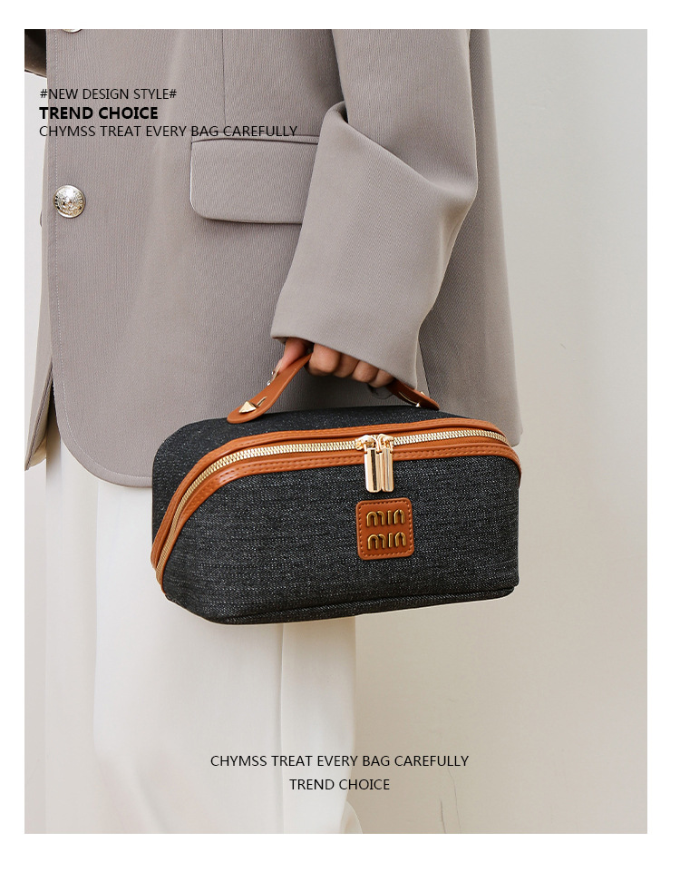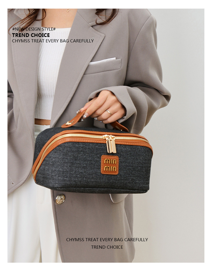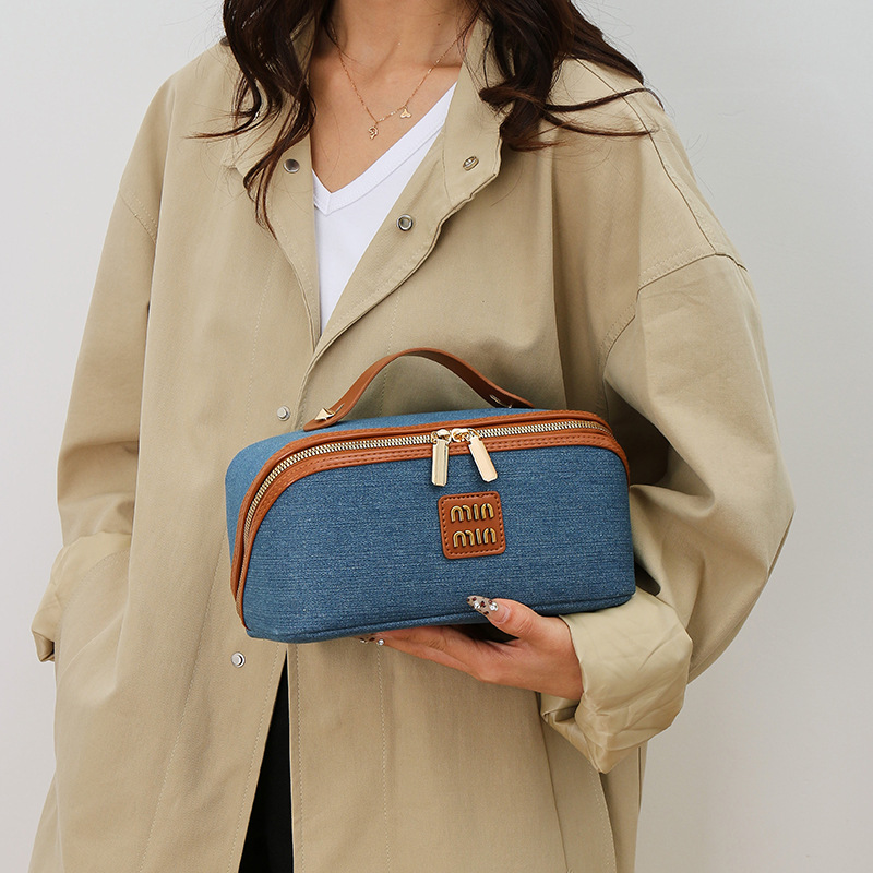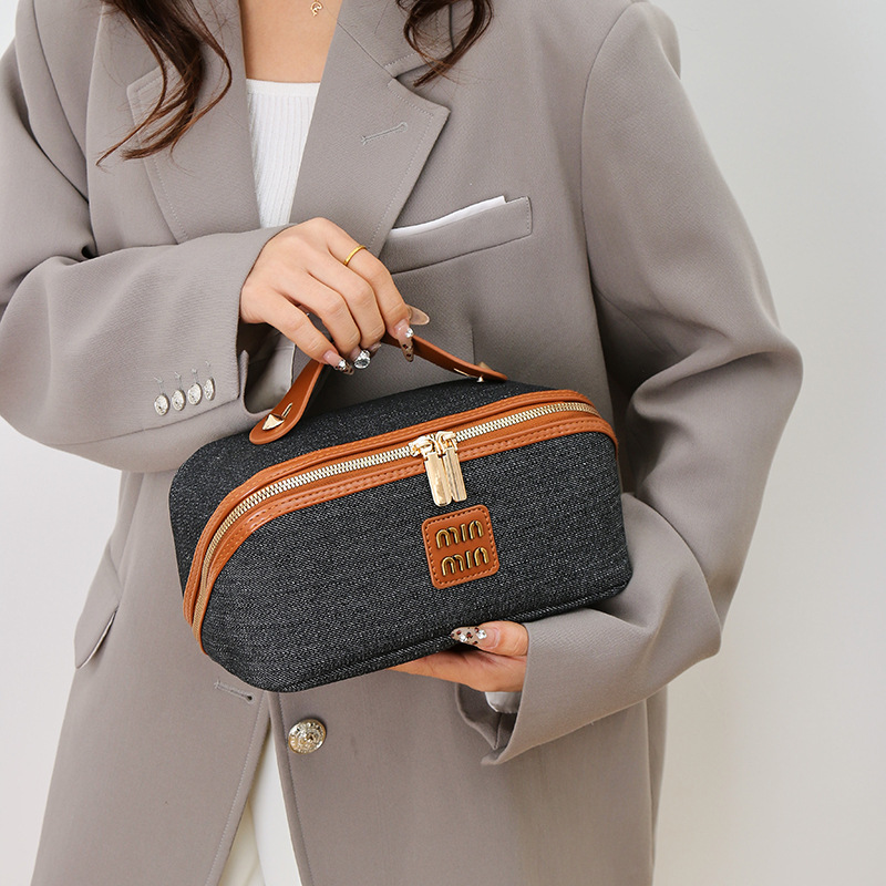 新款牛仔布风琴化妆包女便携大容量高级感旅行化妆品收纳包洗漱包