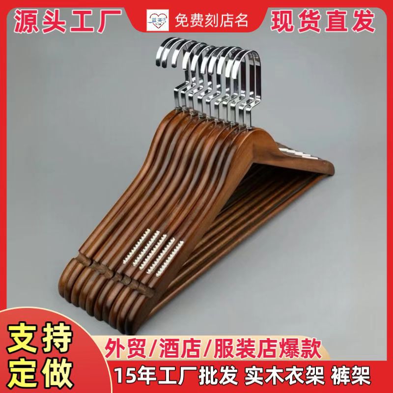 实木衣架木质衣架子无痕衣架家用服装店衣挂复古防滑架子批发裤架