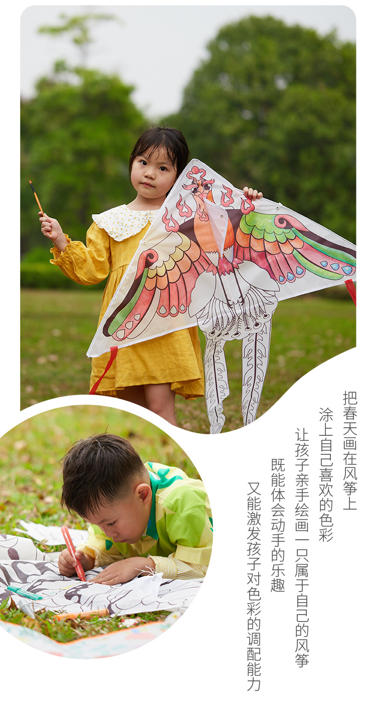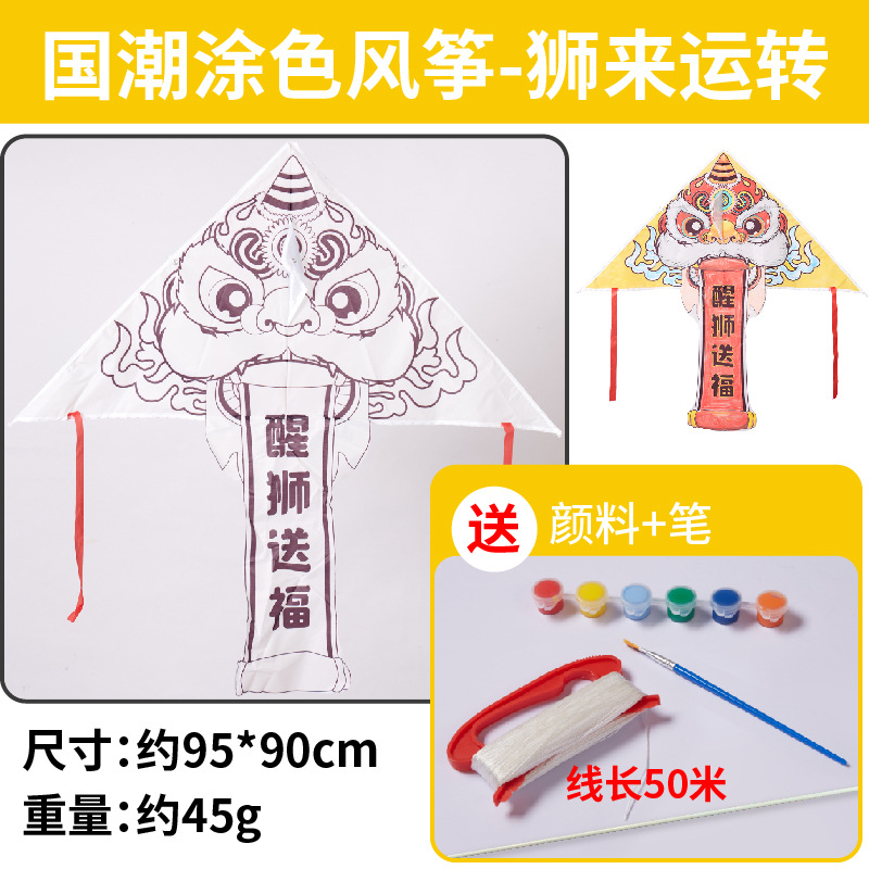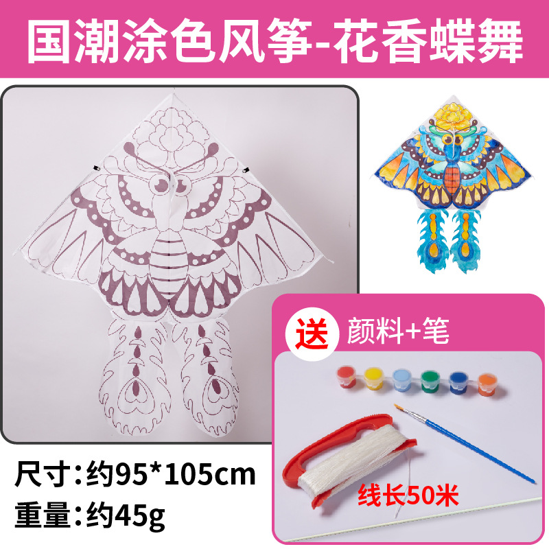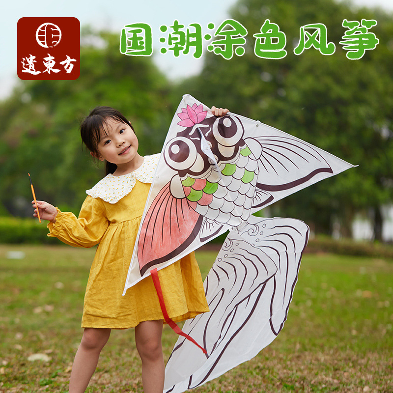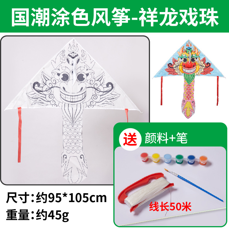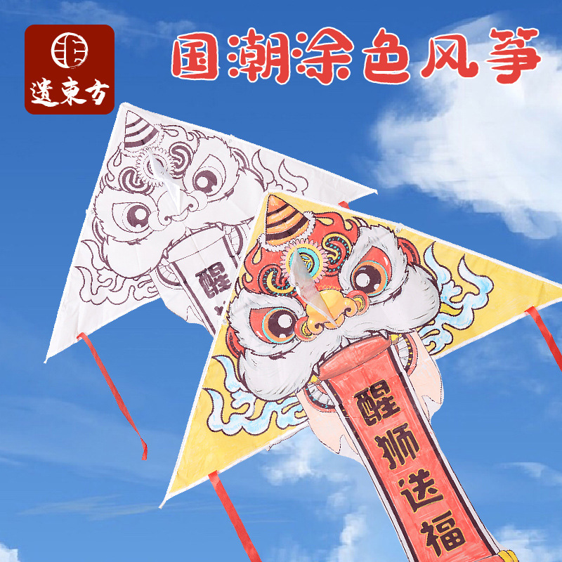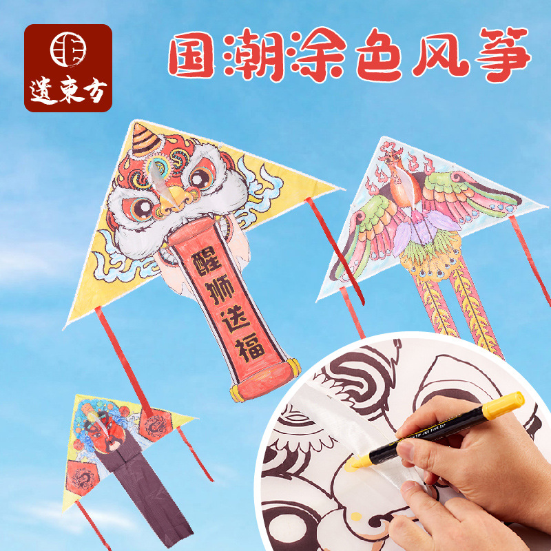 春天户外国潮中式手工风筝diy材料包涂鸦填色儿童创意美术彩绘