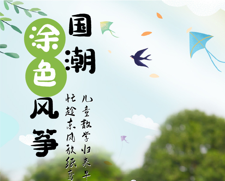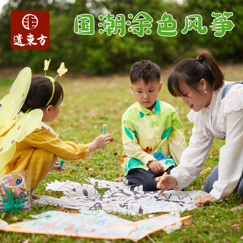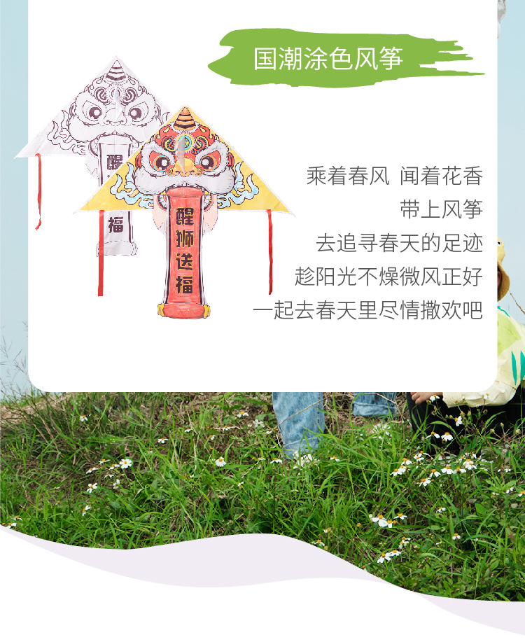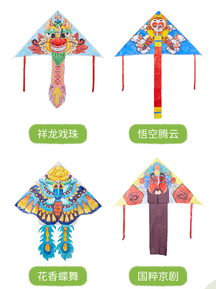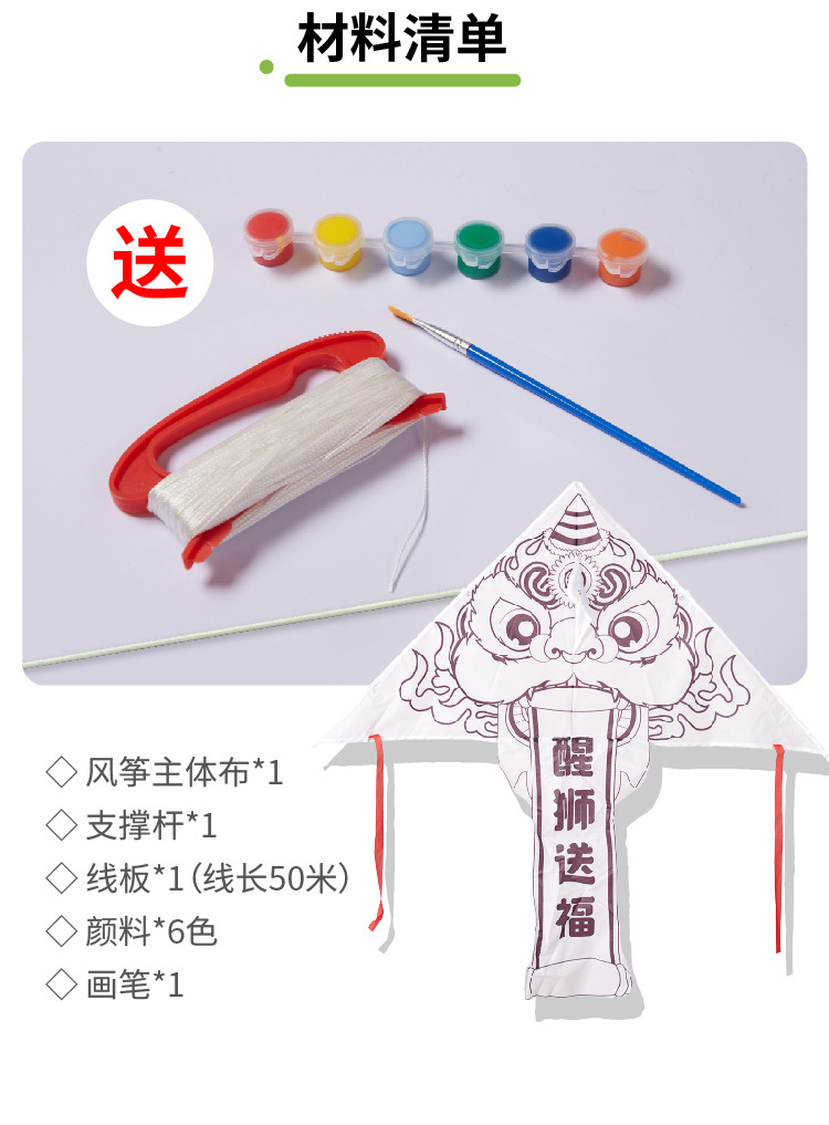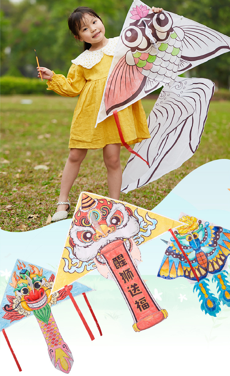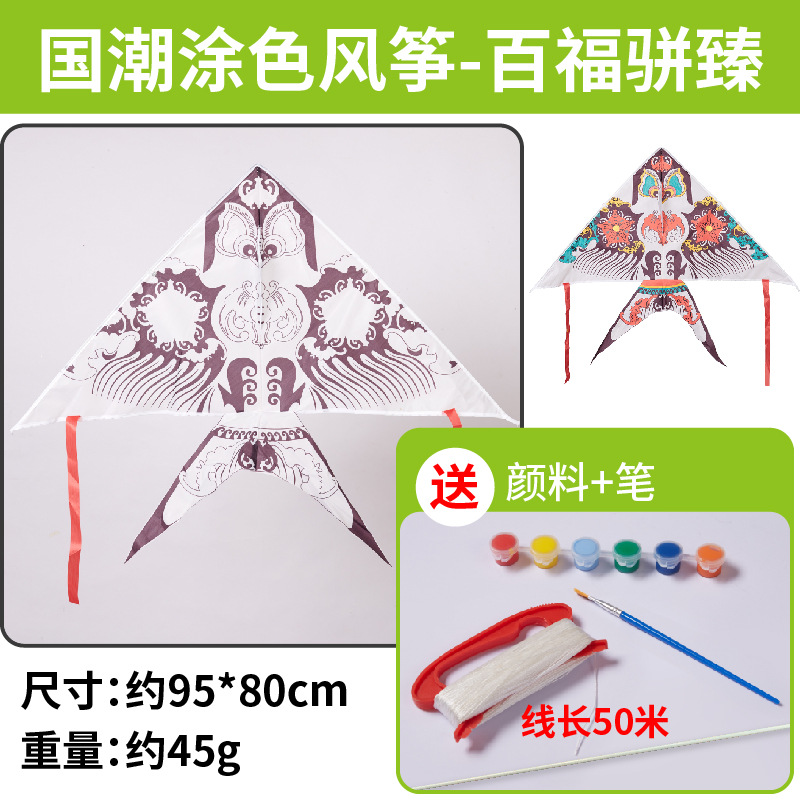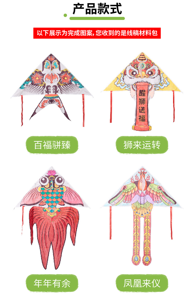 春天户外国潮中式手工风筝diy材料包涂鸦填色儿童创意美术彩绘
