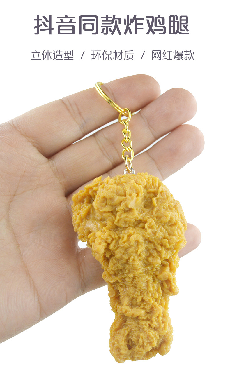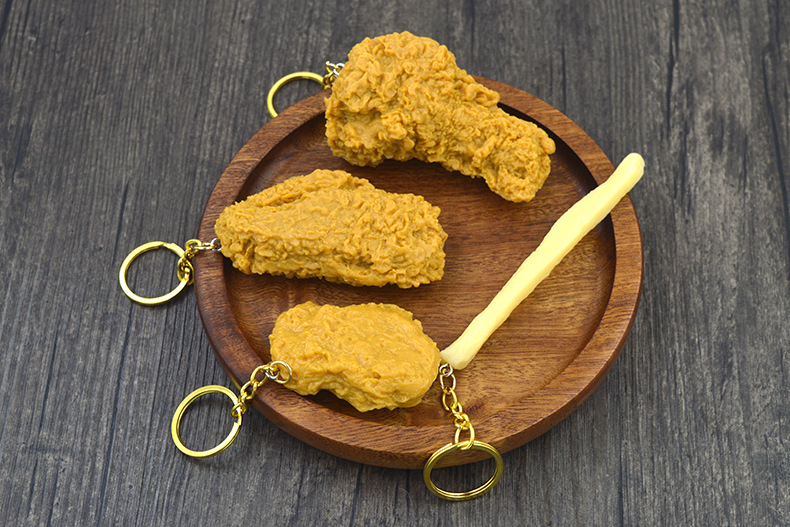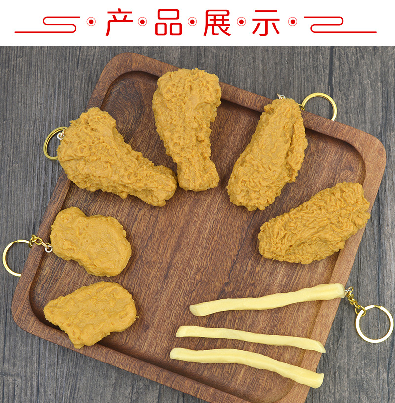 仿真鸡腿薯条炸鸡腿模型仿真鸡翅钥匙扣食玩挂件鸡米花鸡块跨境