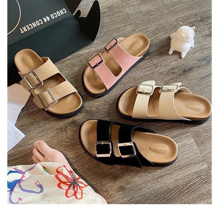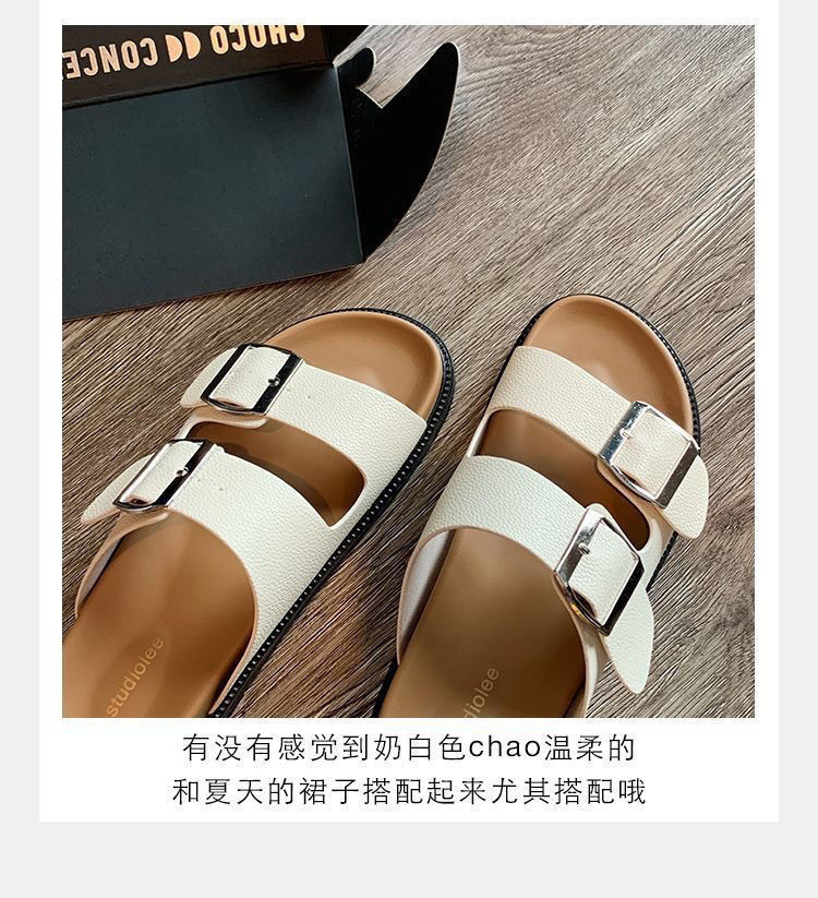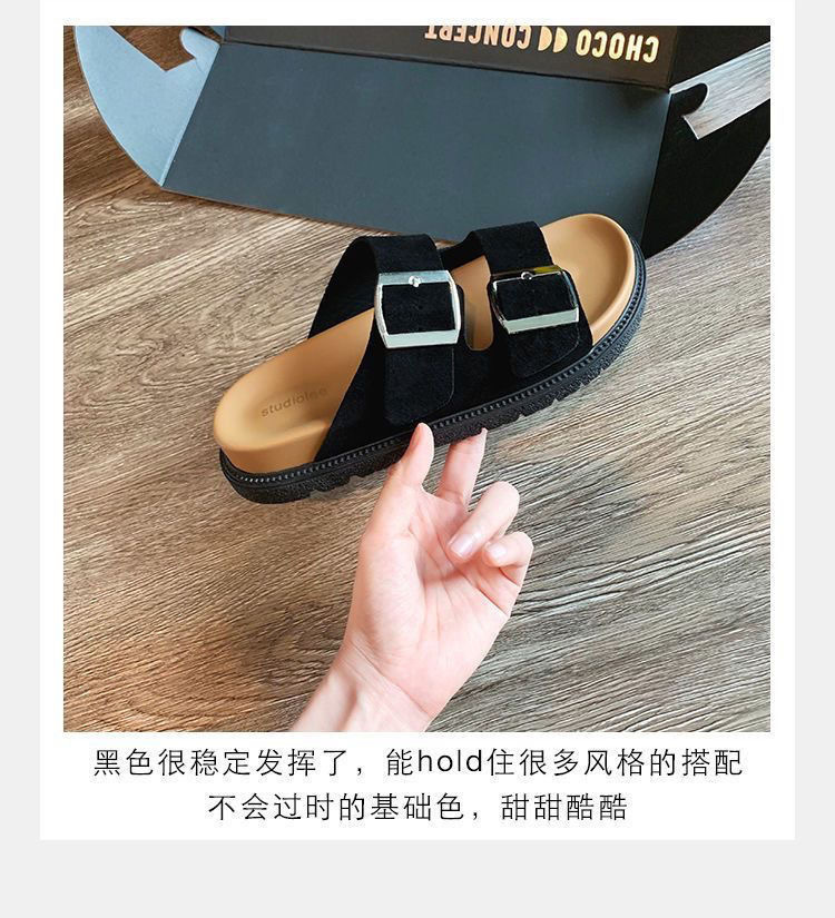 2025年夏季厚底勃肯凉拖鞋女外穿新款复古休闲皮带扣露趾一字拖鞋