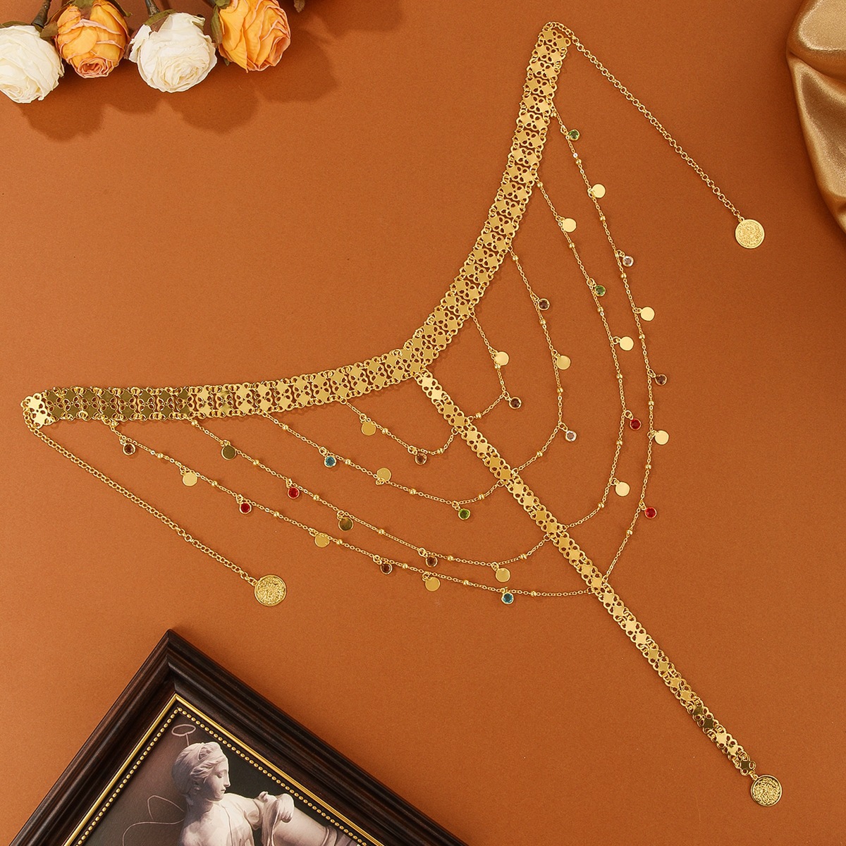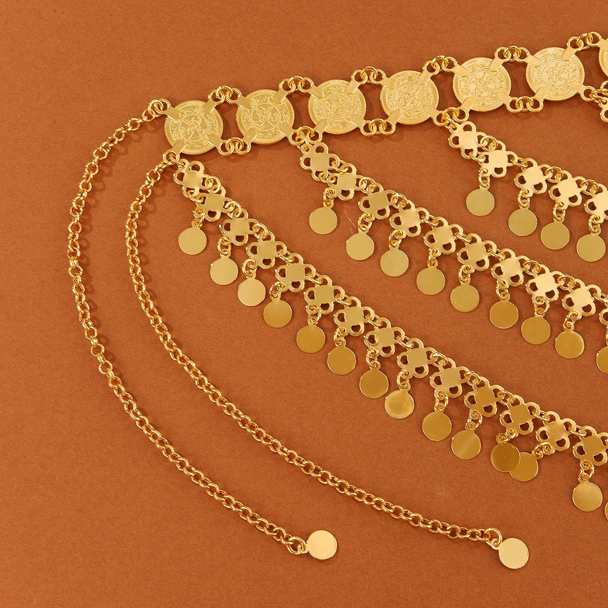 新款创意阿拉伯头饰中东流行金色合金钱币流苏头戴式发链头链发饰