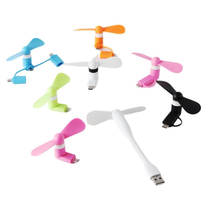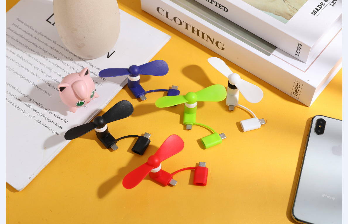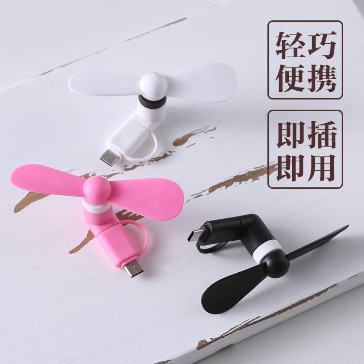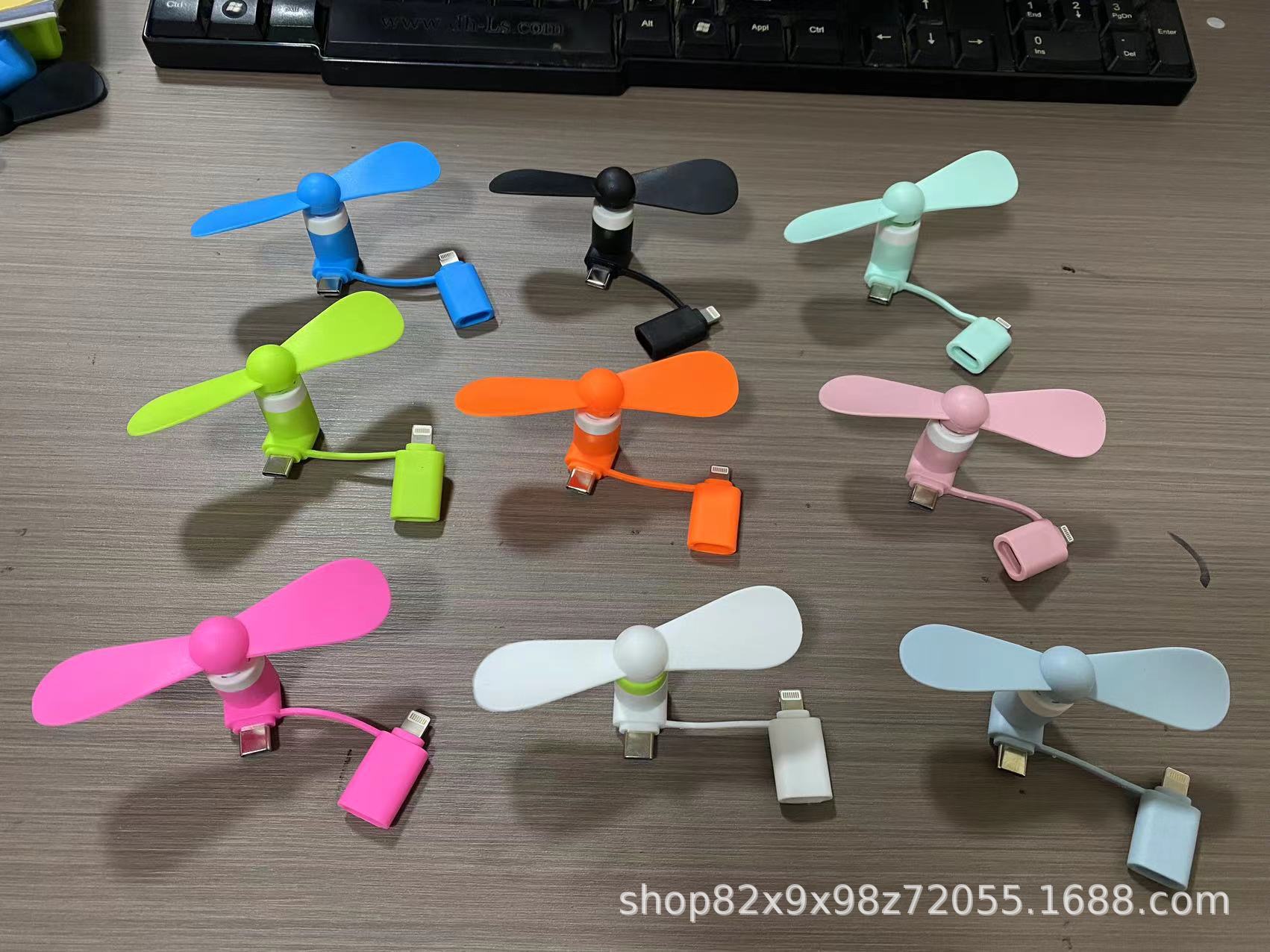 跨境新创意usb手机静音小风扇安卓苹果type-c三合一手持迷你风扇