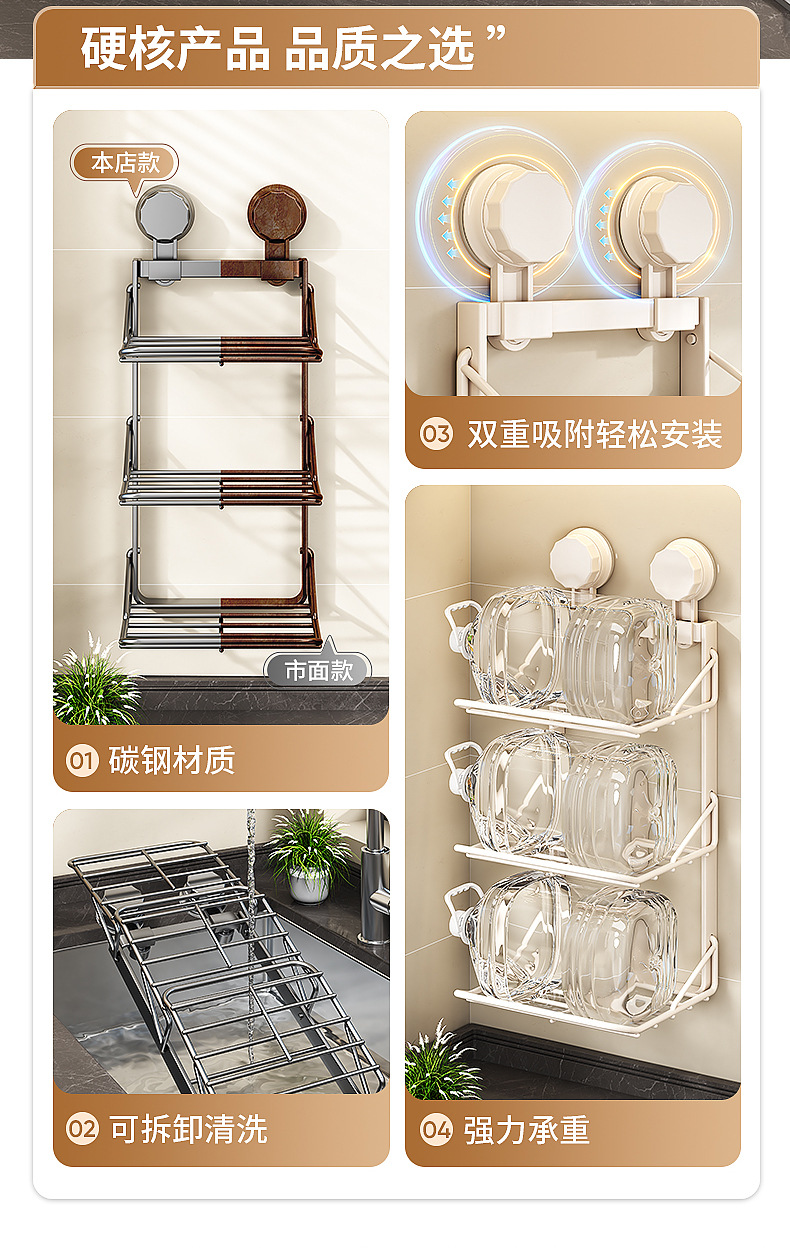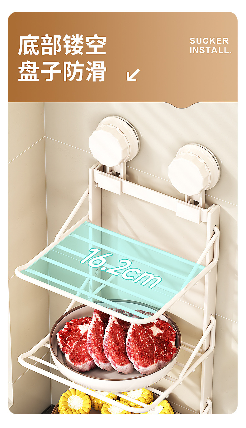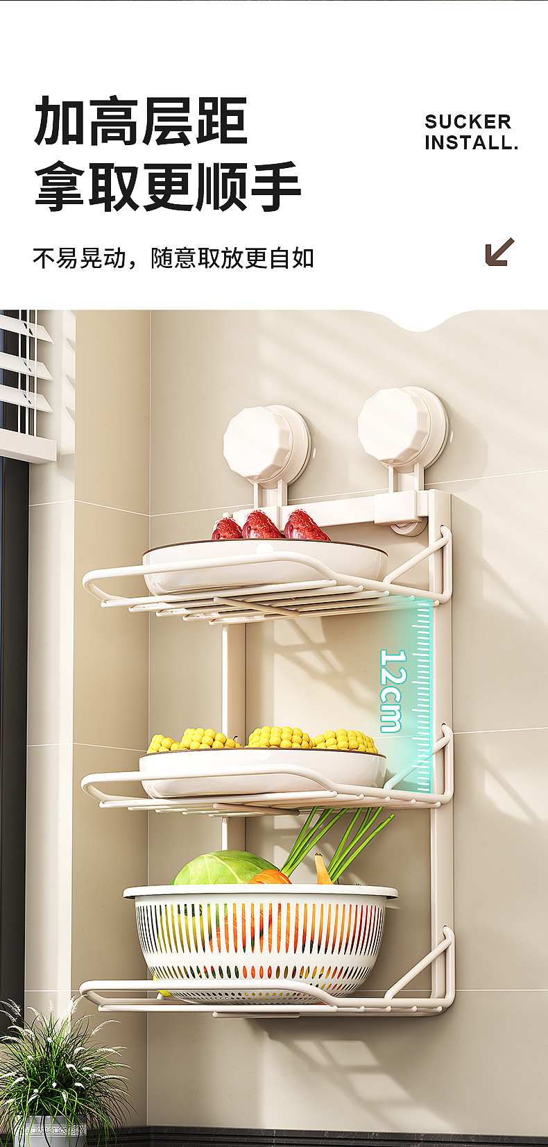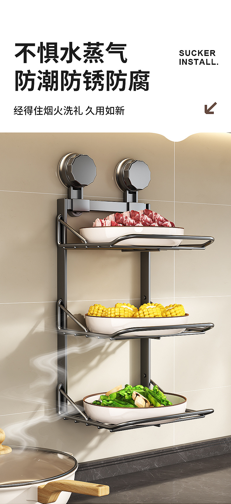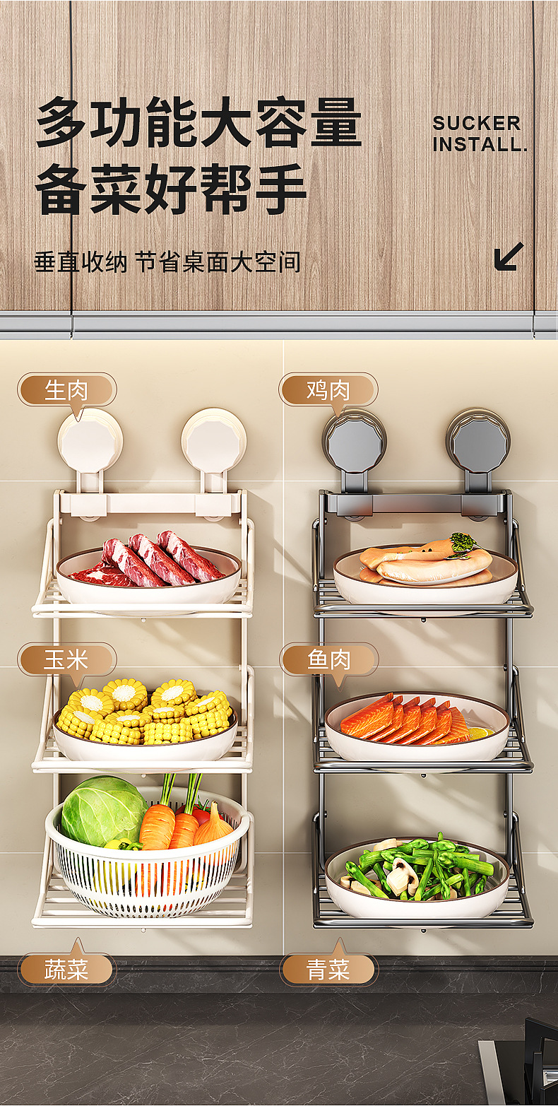 吸盘厨房备菜置物架多层配菜盘多功能壁挂家用可折叠收纳放菜架子