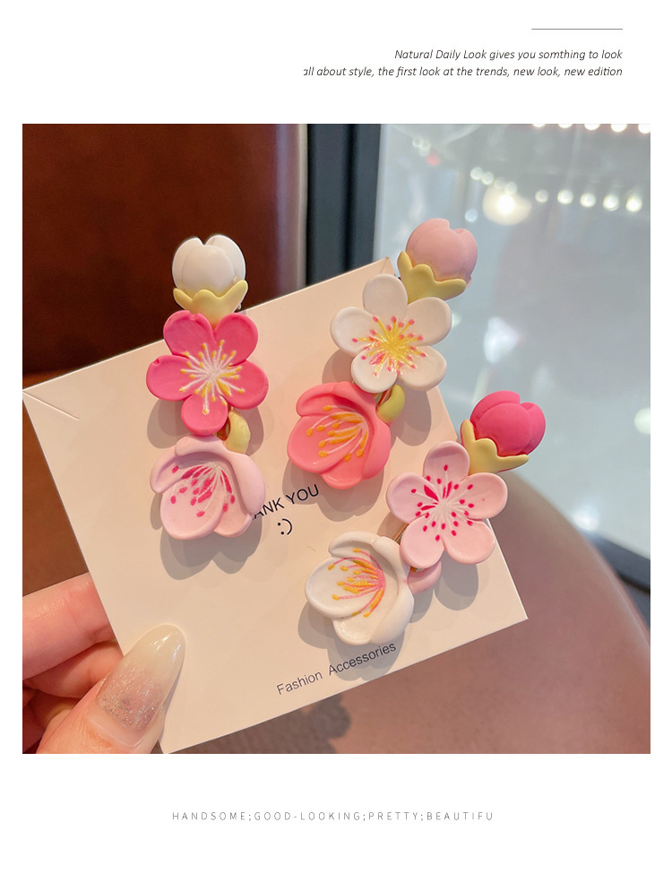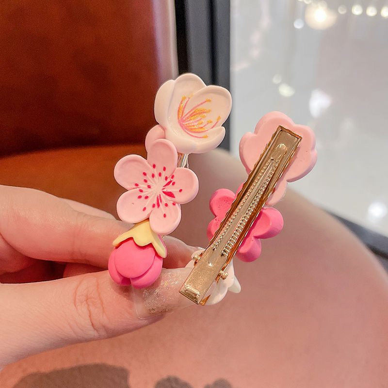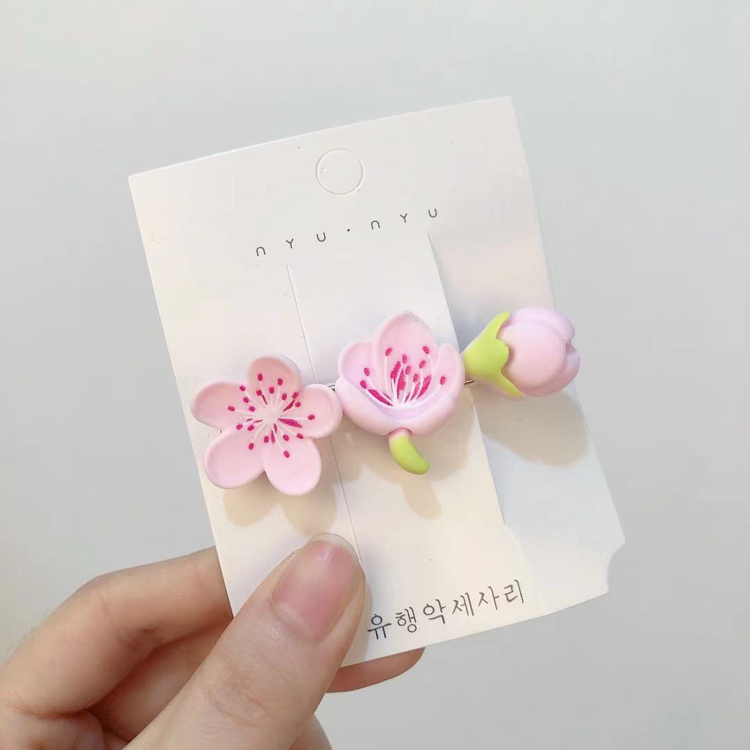 粉色桃花小清新暖色系列发夹樱花女夏季刘海发卡鸭嘴夹学生小饰品