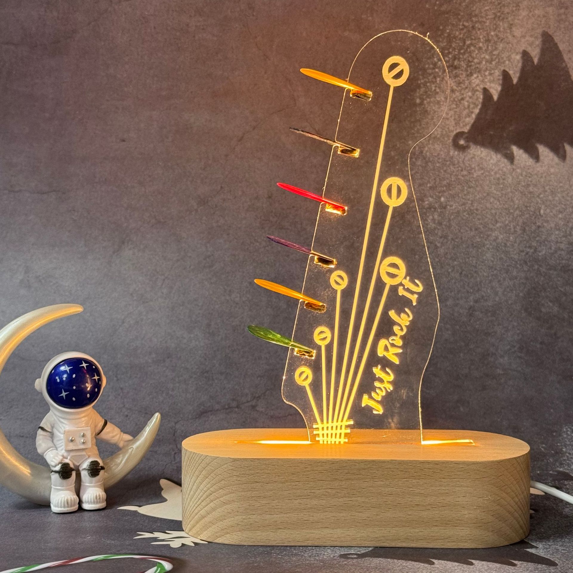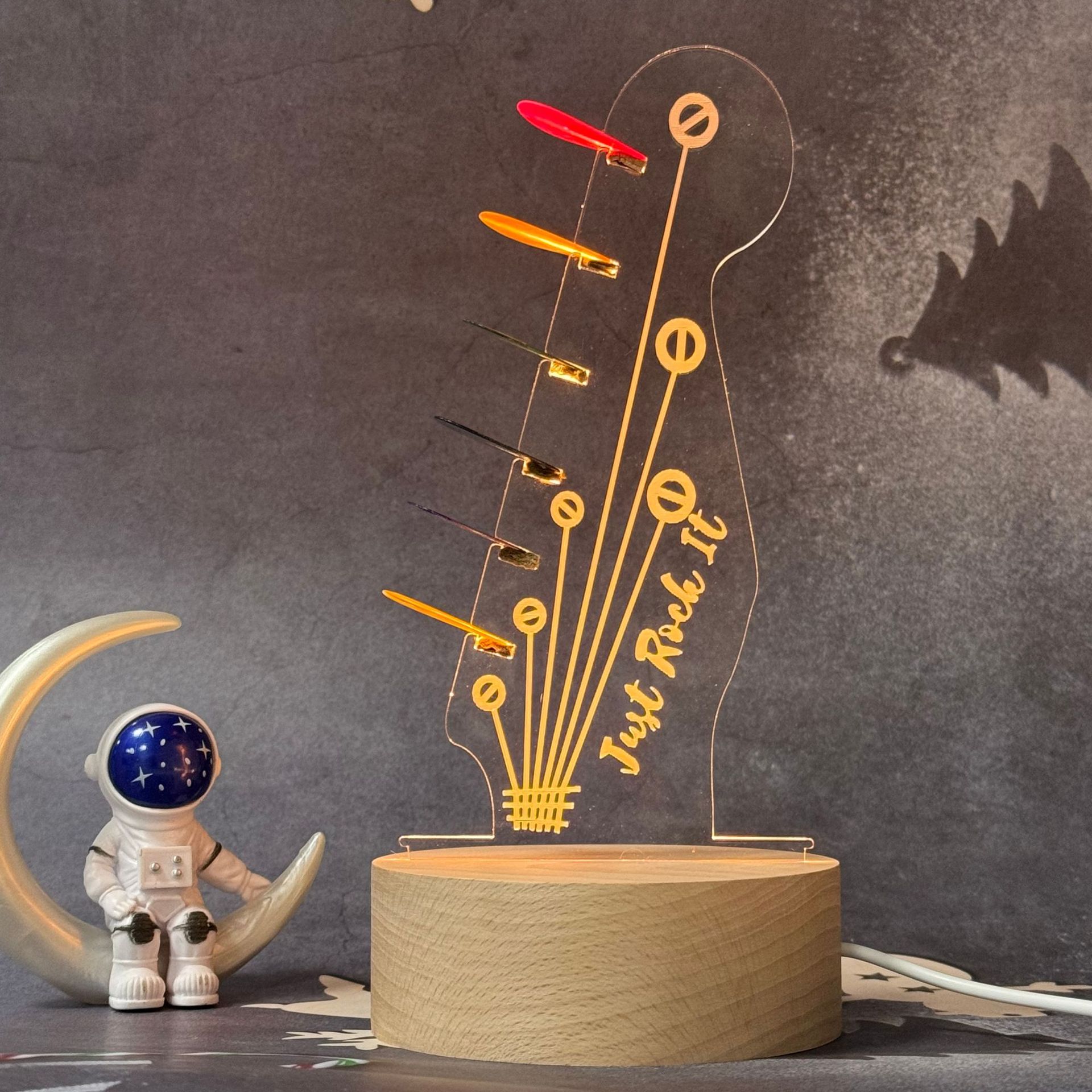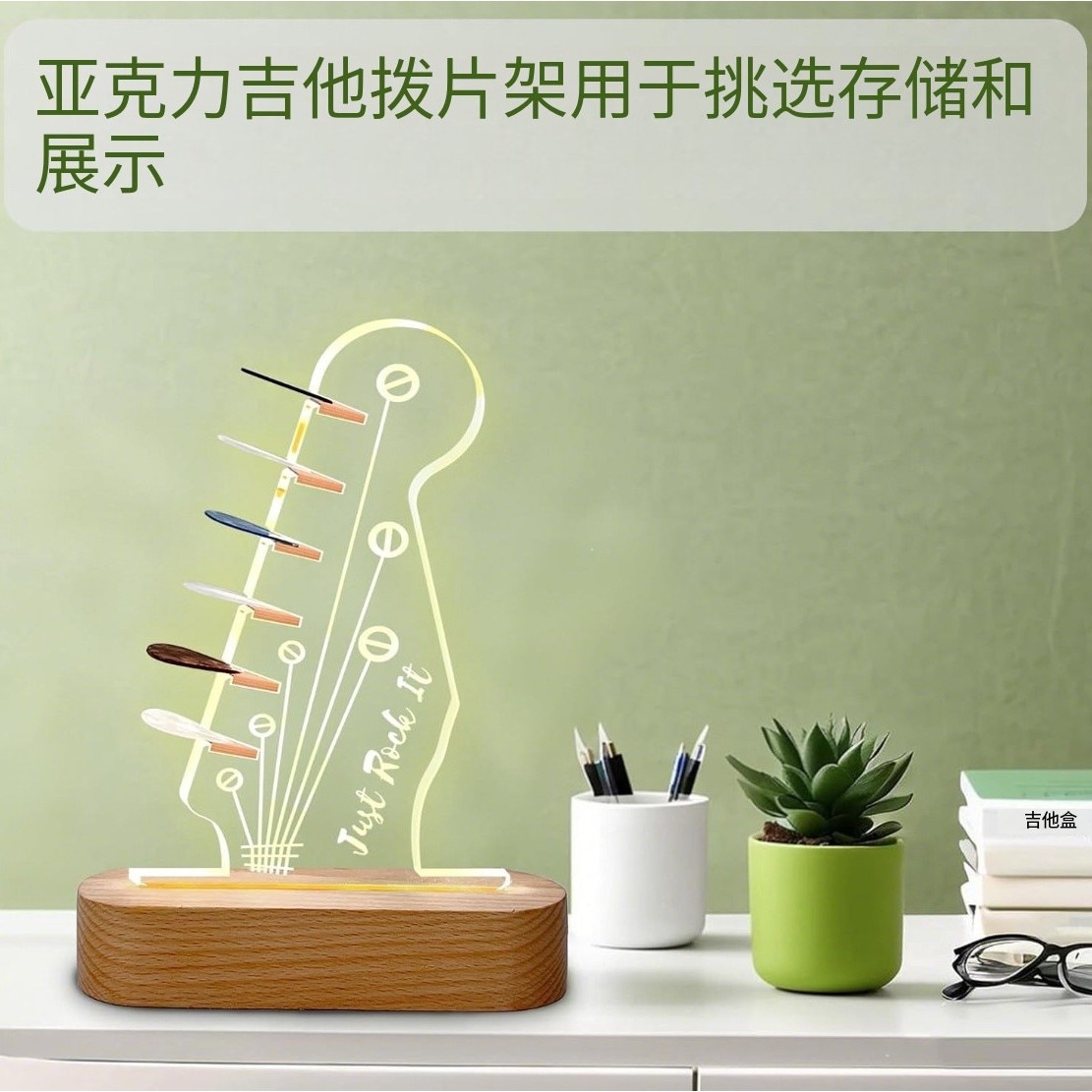 外贸专供氛围3D小夜灯木制吉他拨片收纳架亚克力投影灯创意礼品灯