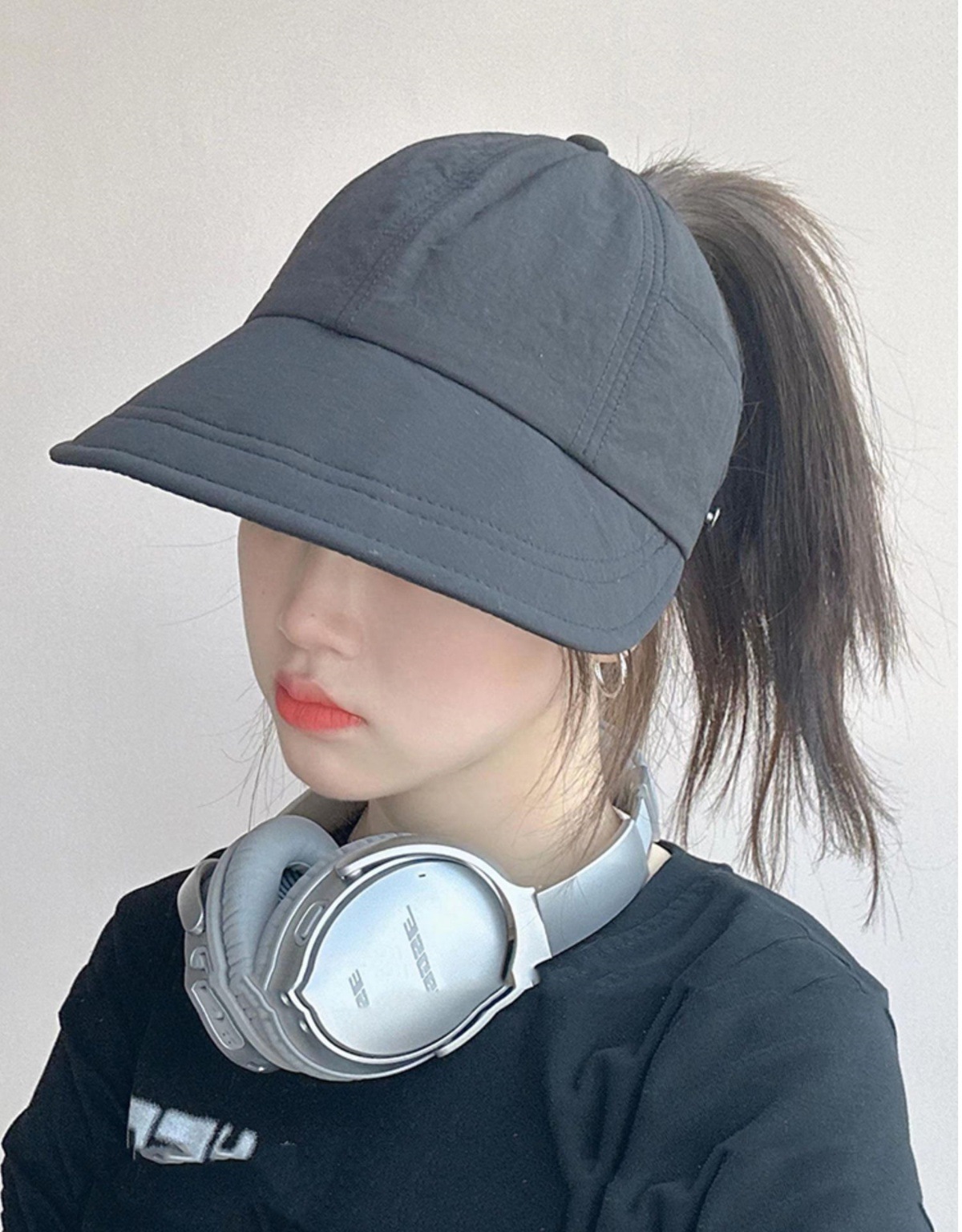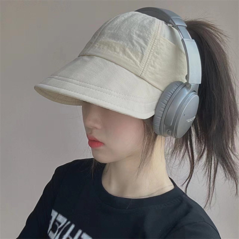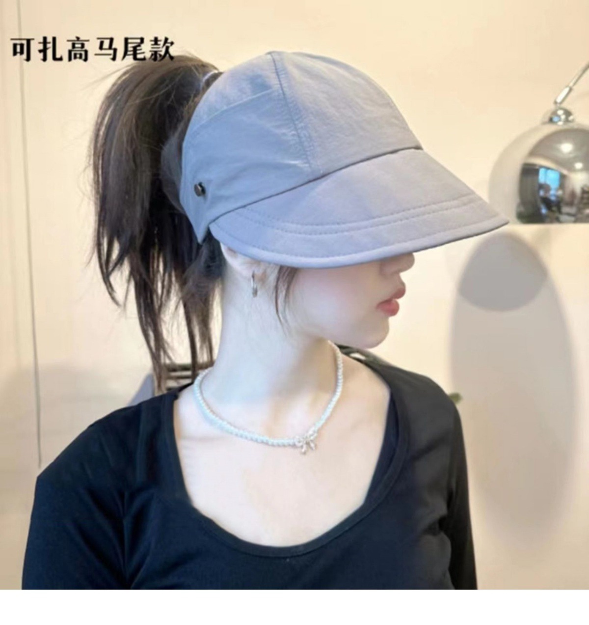 可扎马尾速干防水鸭舌帽夏天薄款宽檐空顶帽子女遮阳防嗮渔夫帽潮