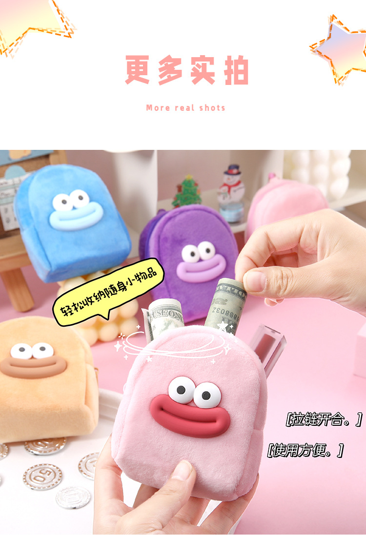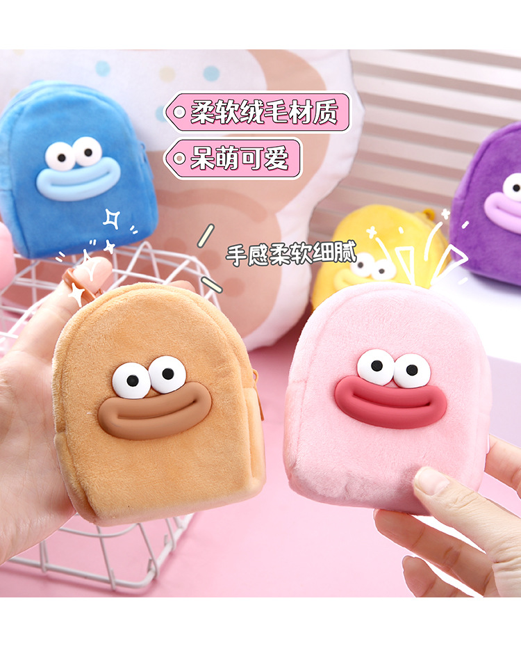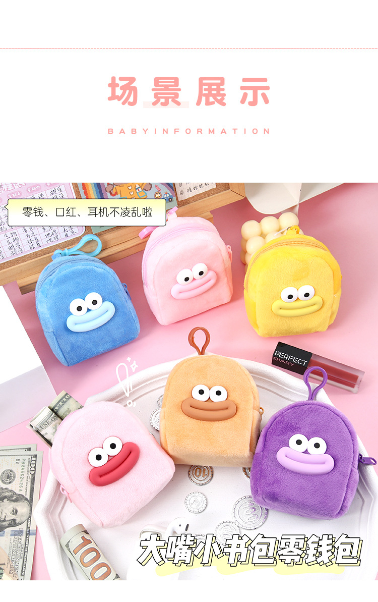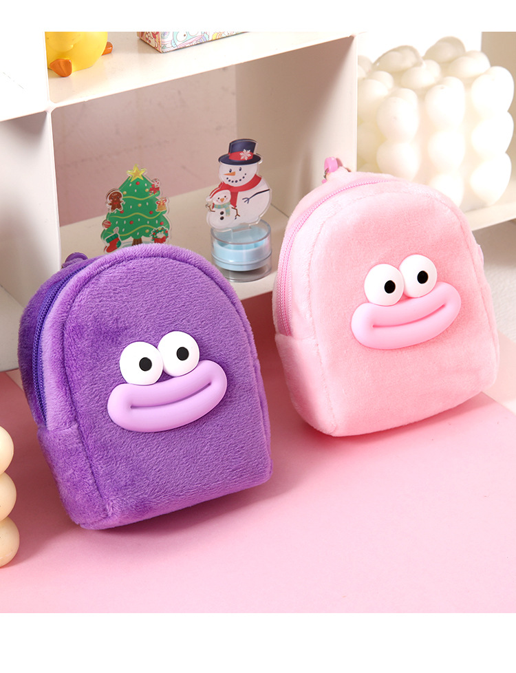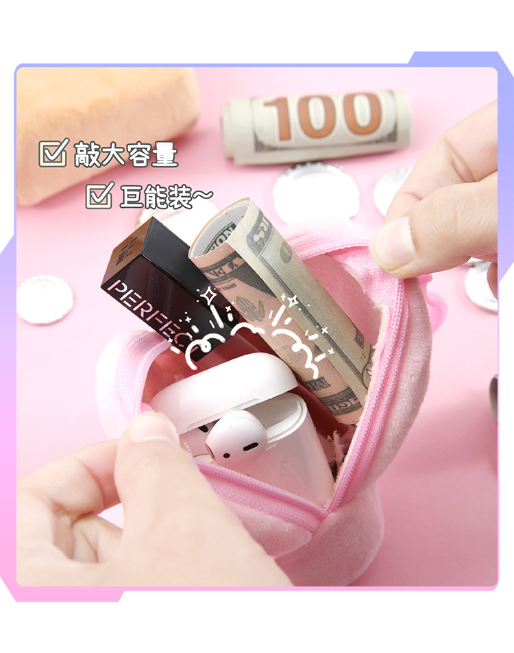 可爱卡通书包零钱包毛绒耳机收纳包学生零钱袋迷你便携硬币小钱包