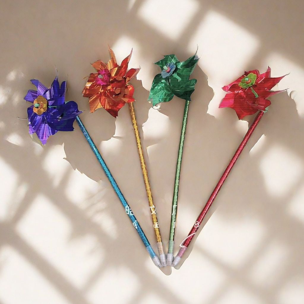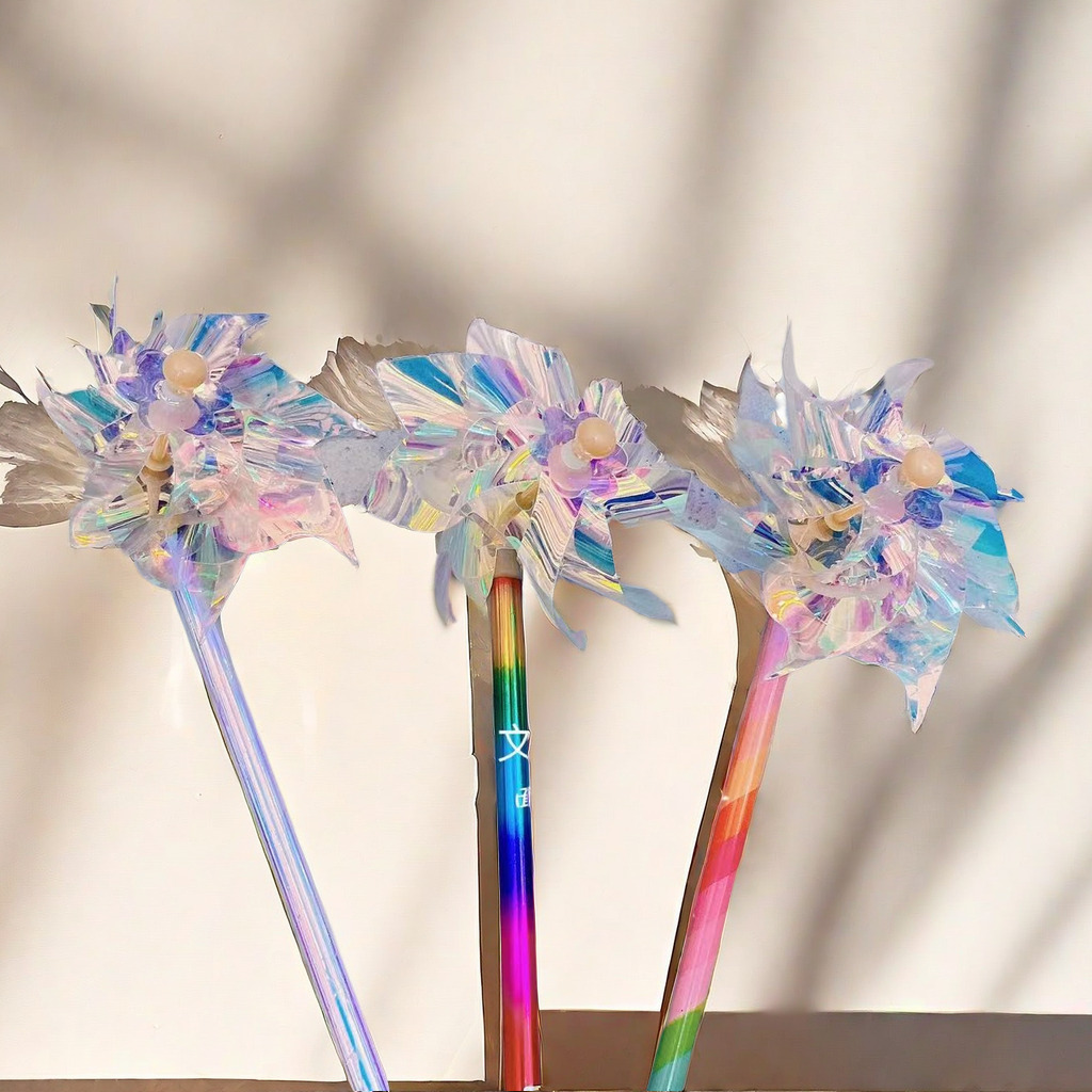 创意小清新镭射造型风车笔圆珠笔蓝色学生圆珠笔学生文具奖品批发