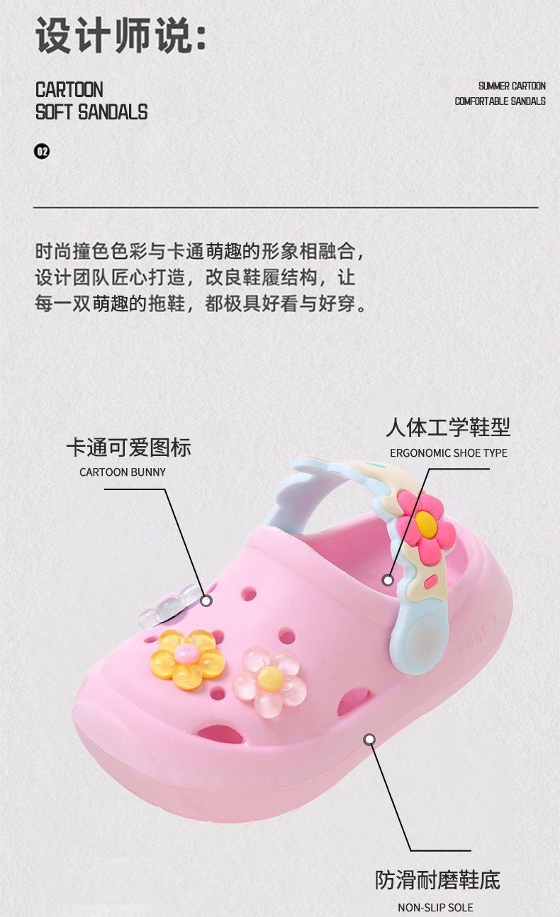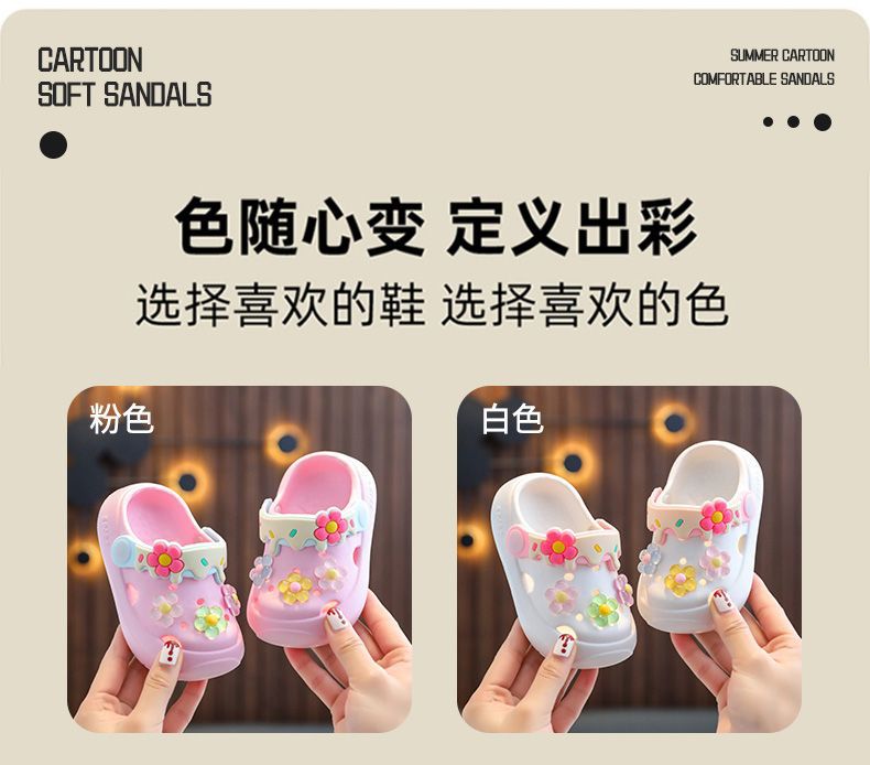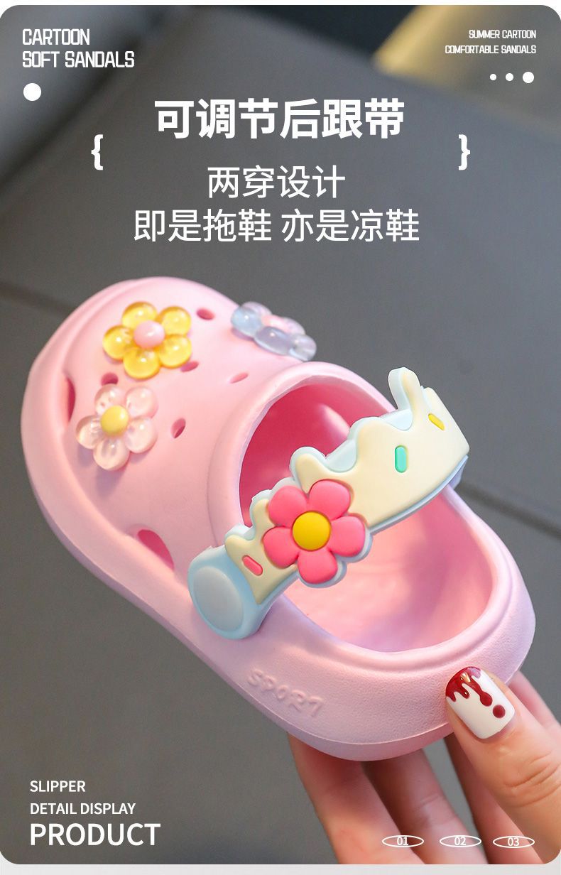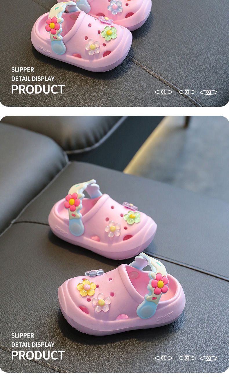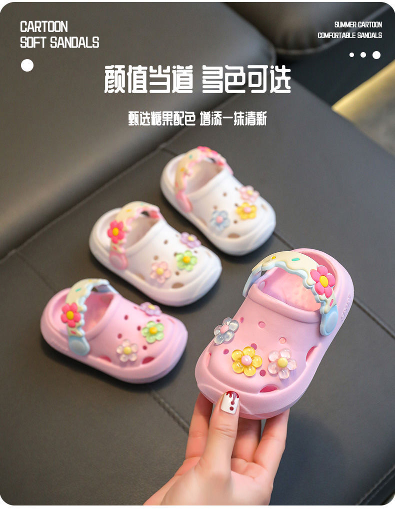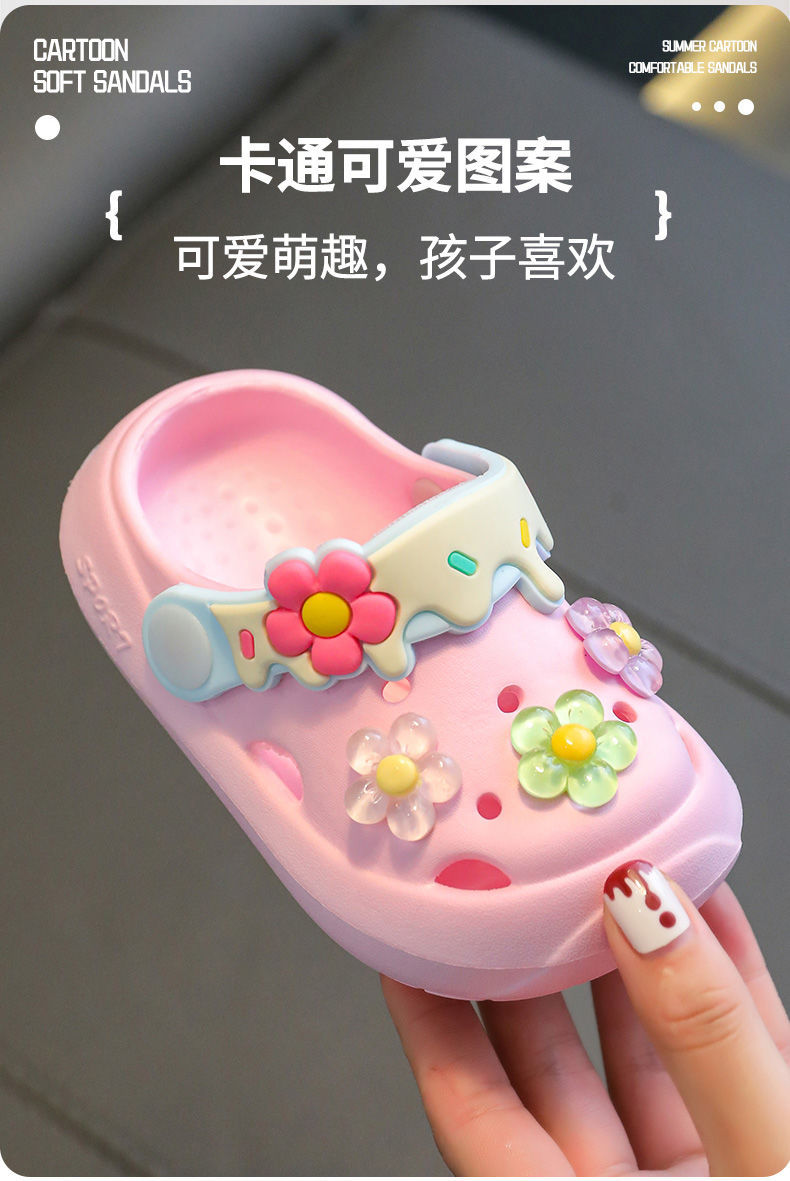 儿童拖鞋夏季宝宝2024新款可爱花朵软底室内防滑儿童凉拖洞洞鞋