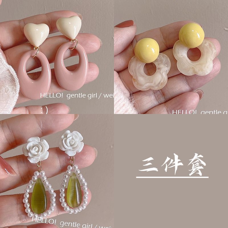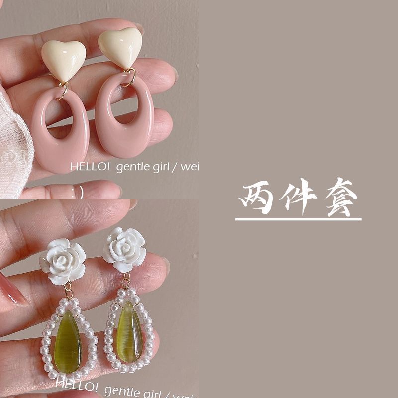 小清新爱心耳环女2025年新款潮爆款ins甜美花朵耳钉网红耳坠耳饰