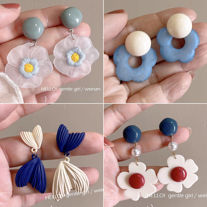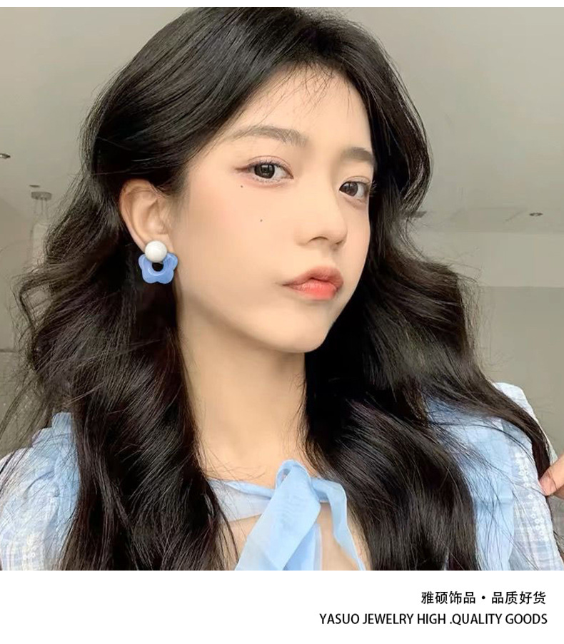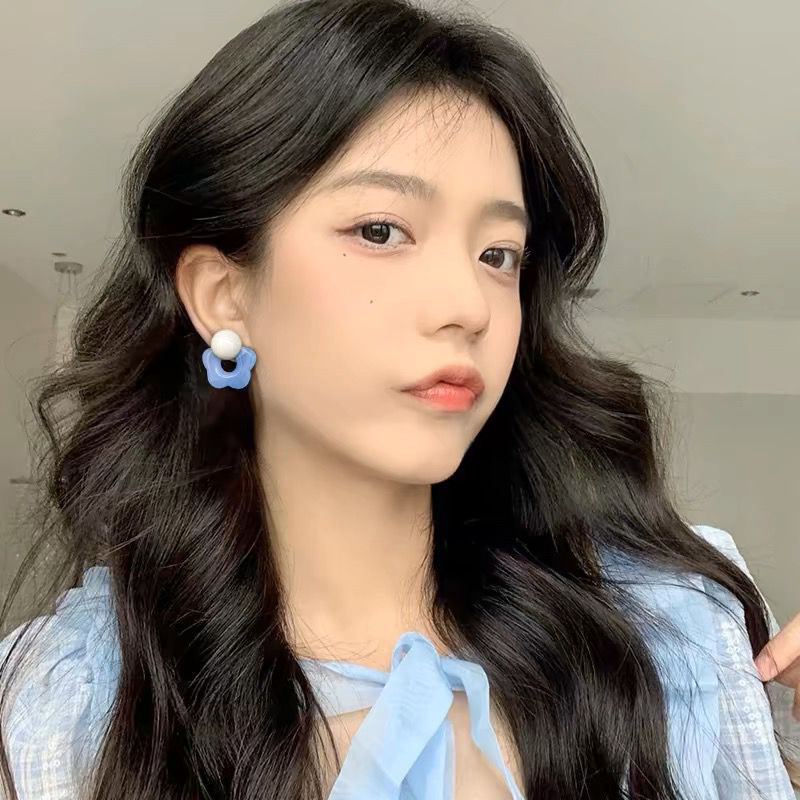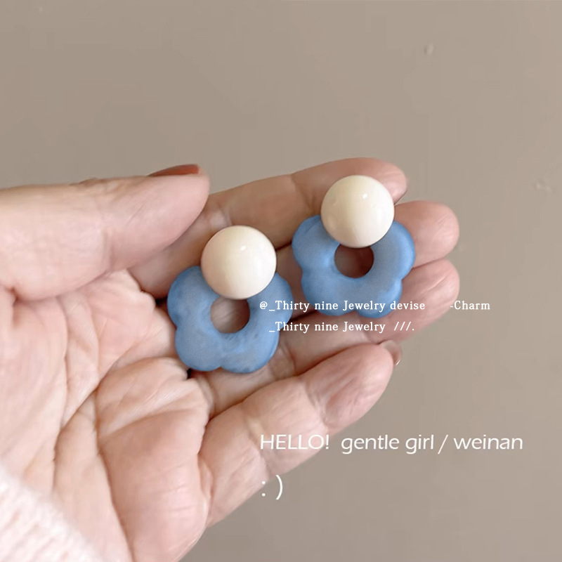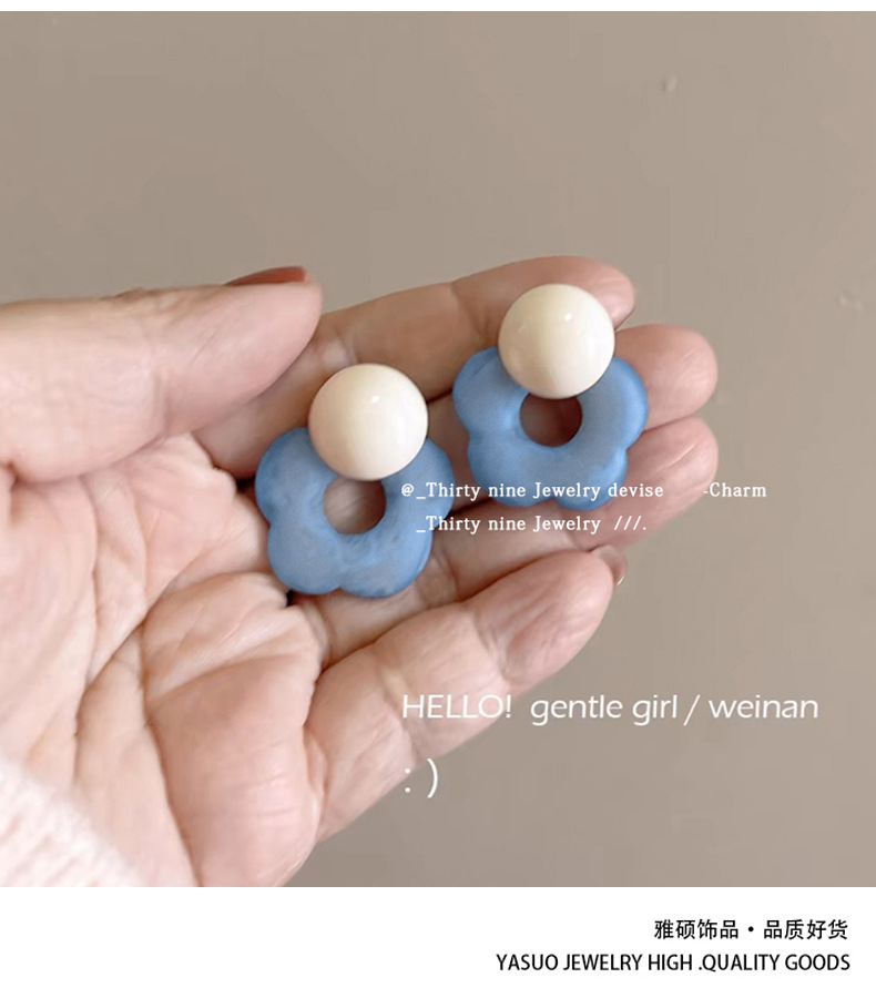 夏日风蓝色花朵耳钉女2025新款爆款高级感海边耳钉甜美小清新耳饰
