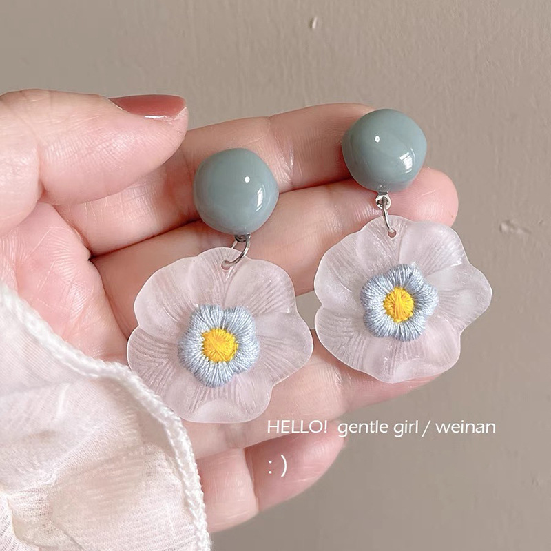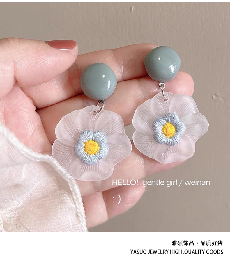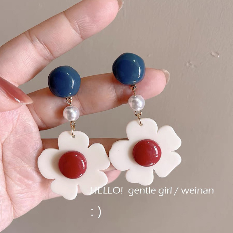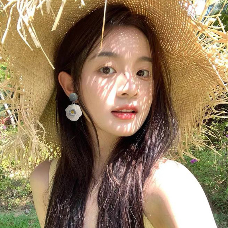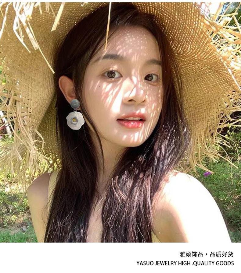 夏日风蓝色花朵耳钉女2025新款爆款高级感海边耳钉甜美小清新耳饰
