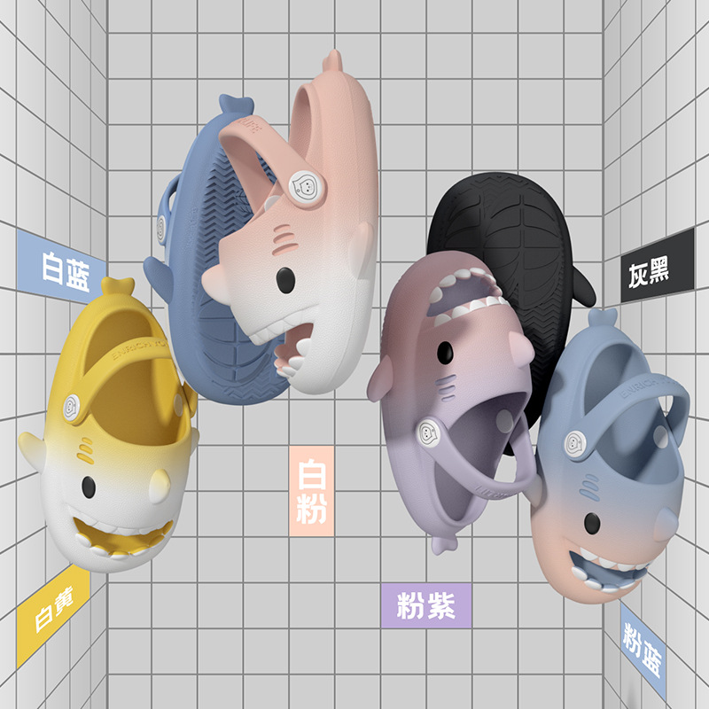 渐变鲨鱼儿童拖鞋夏季男童女童可爱软底防滑室内婴幼儿宝宝洞洞鞋