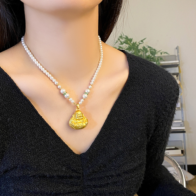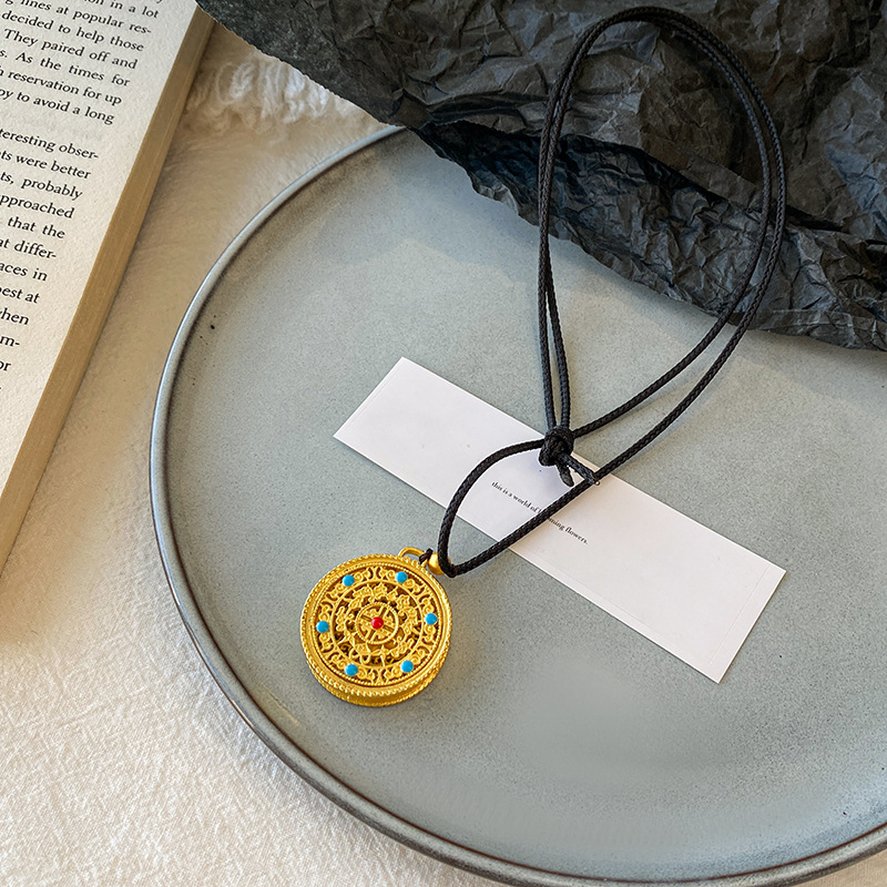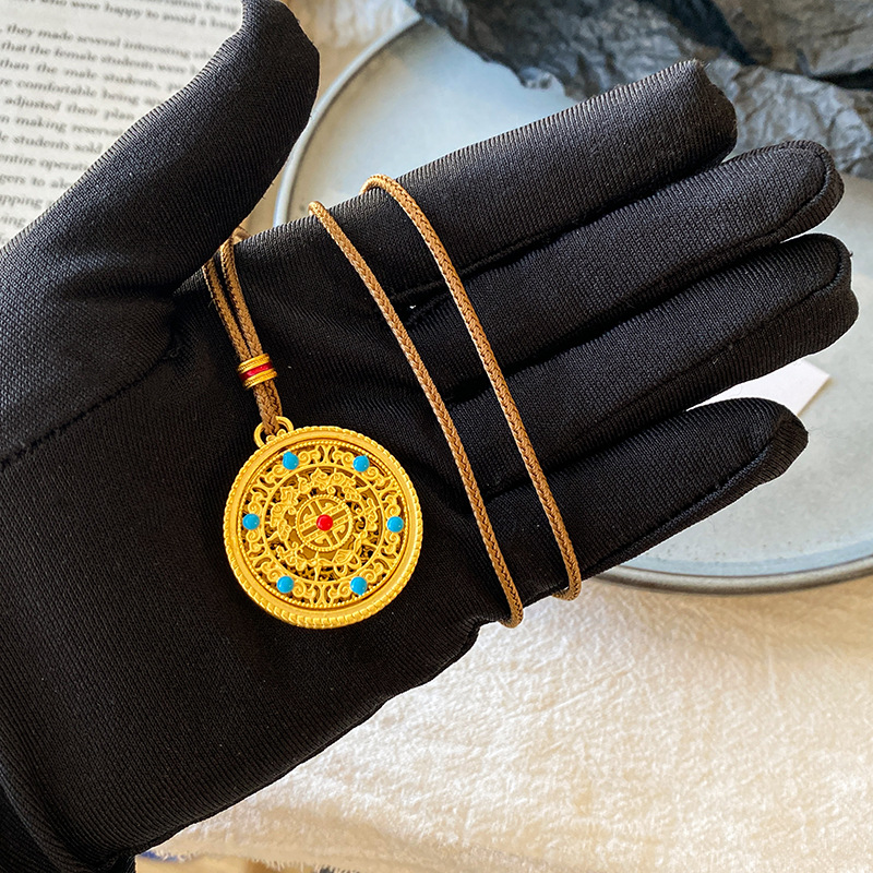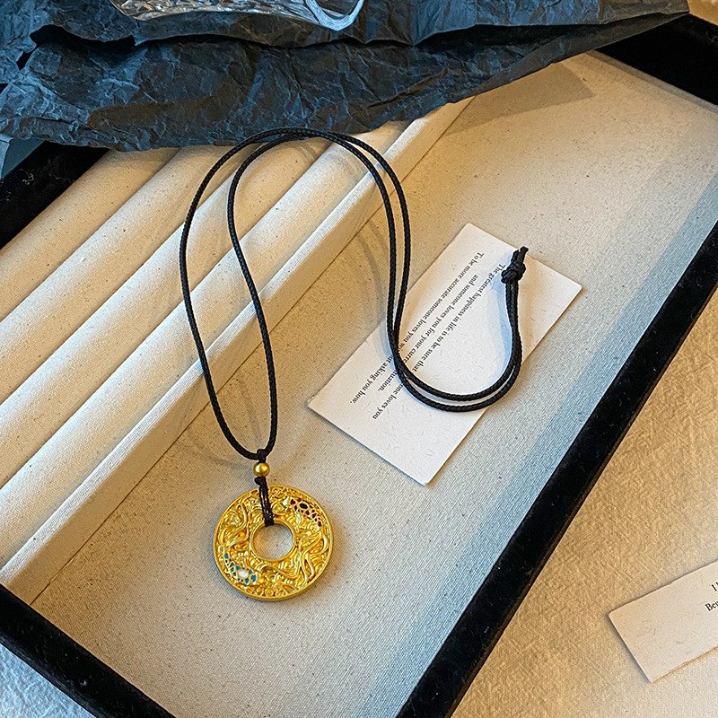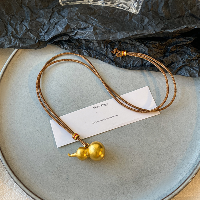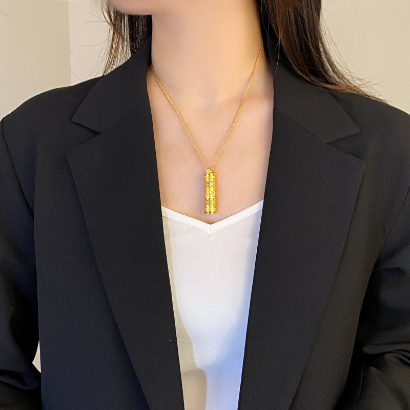 强保色沙金项链金店同款国风毛衣链轻奢百搭高级感锁骨链颈链吊坠