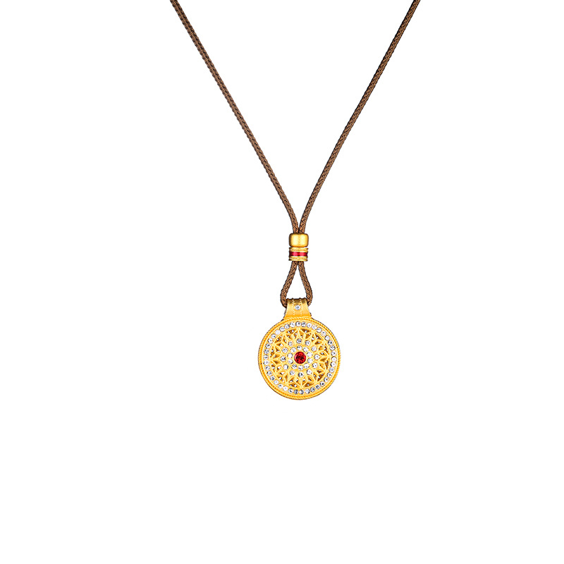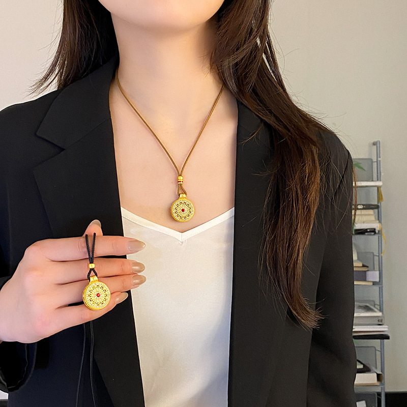 强保色沙金八宝罗盘项链新中式国风轻奢大气毛衣链高级感百搭挂件