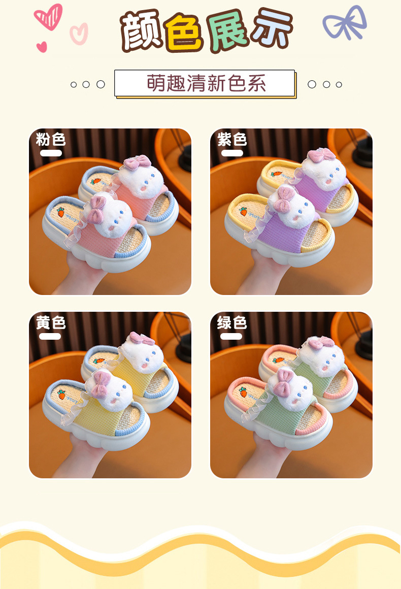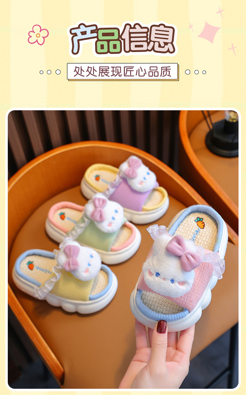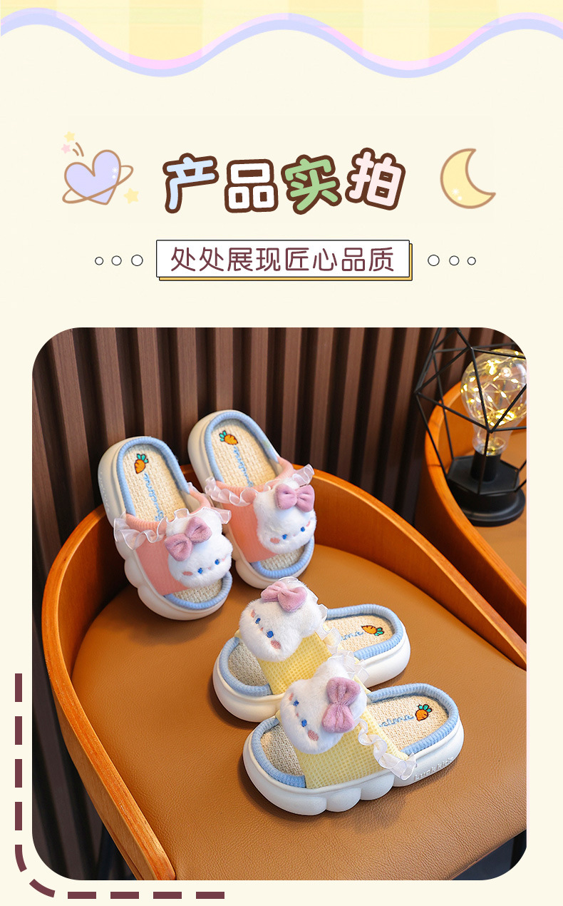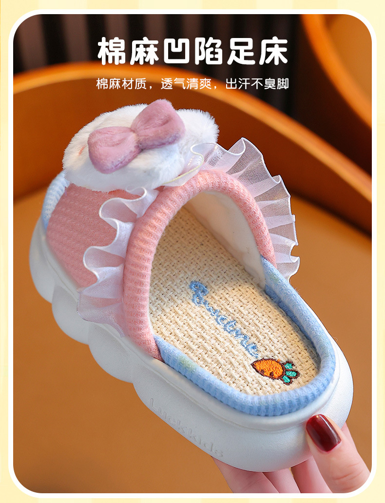 儿童亚麻拖鞋春秋女童公主居家防滑厚底四季家用小孩宝宝地板拖鞋