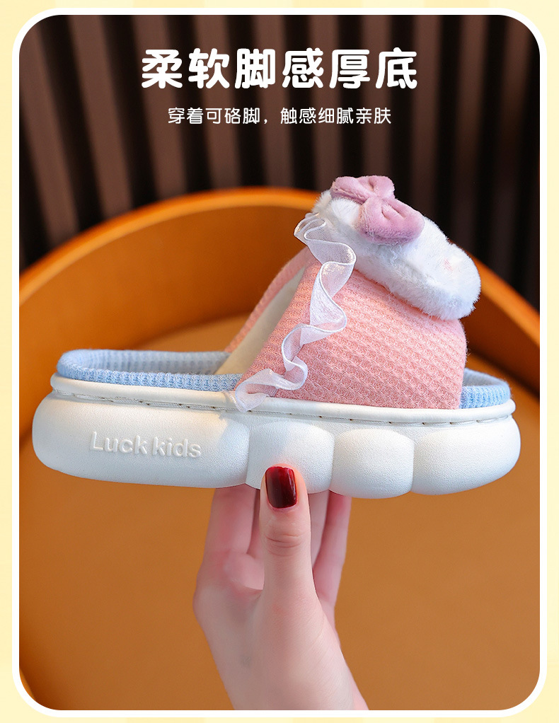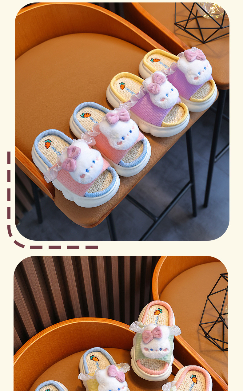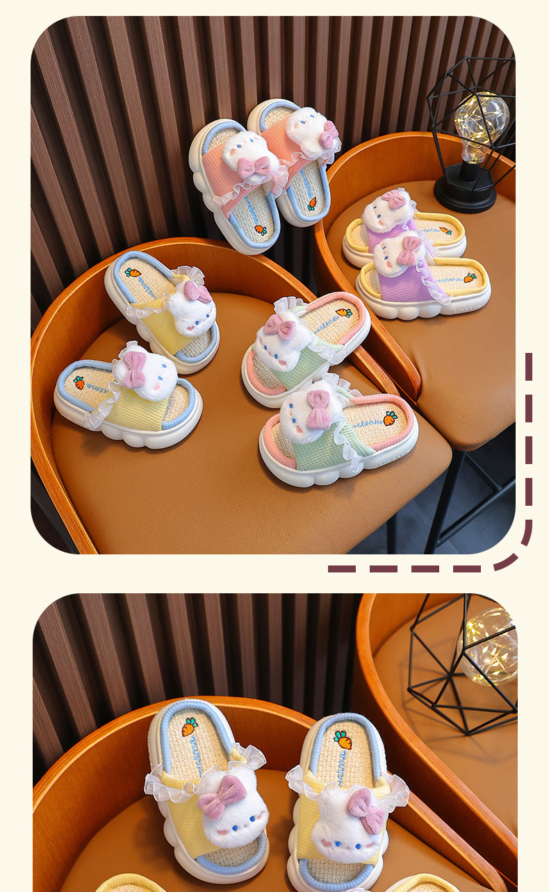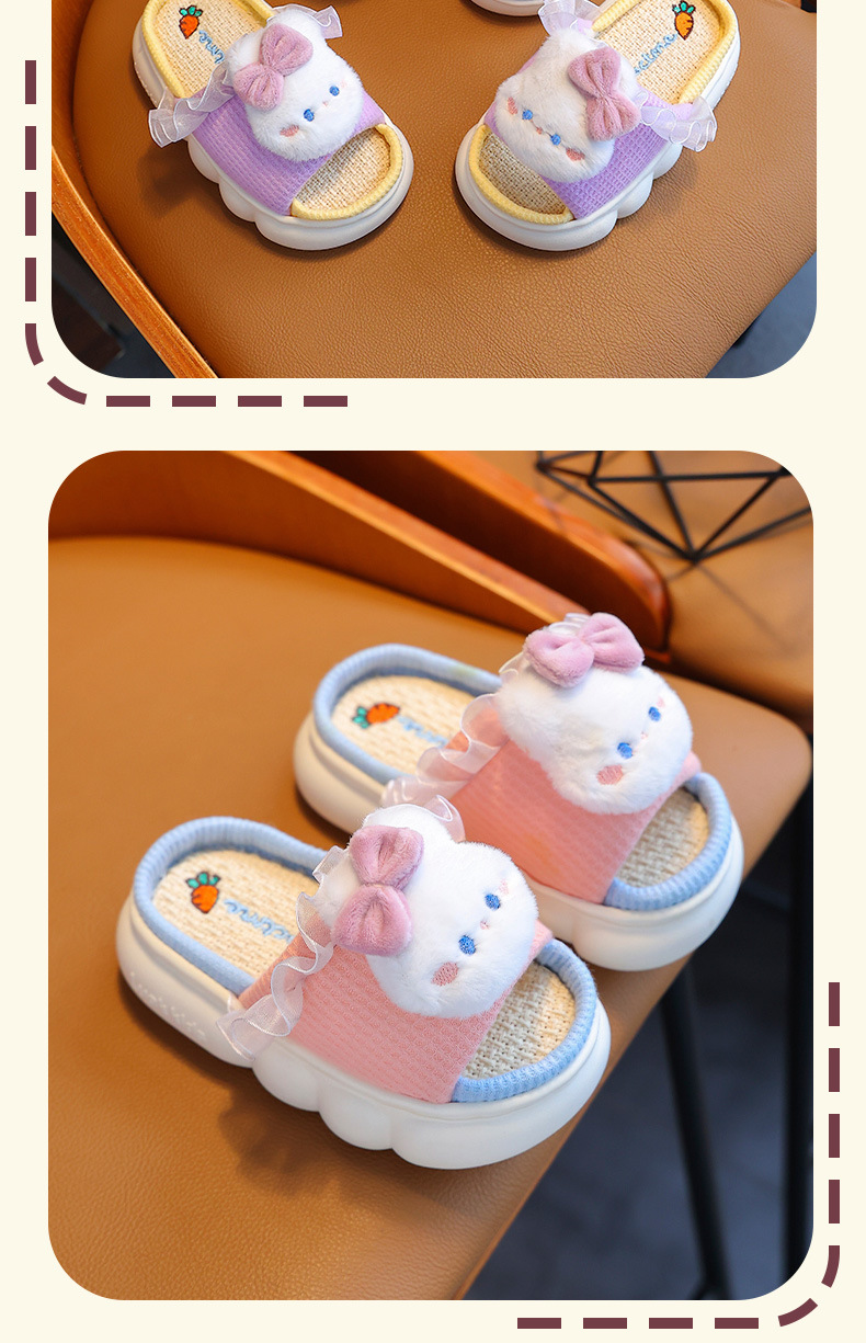 儿童亚麻拖鞋春秋女童公主居家防滑厚底四季家用小孩宝宝地板拖鞋
