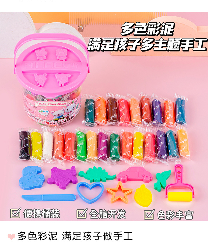 24色超轻粘土套装带工具幼儿园儿童益智玩具太空泥手工橡皮泥彩泥