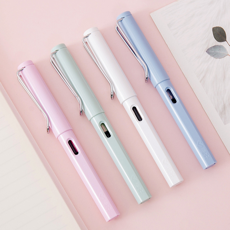 马卡龙透明正姿学生塑料钢笔可换墨囊 宝珠笔加印logo套装礼品