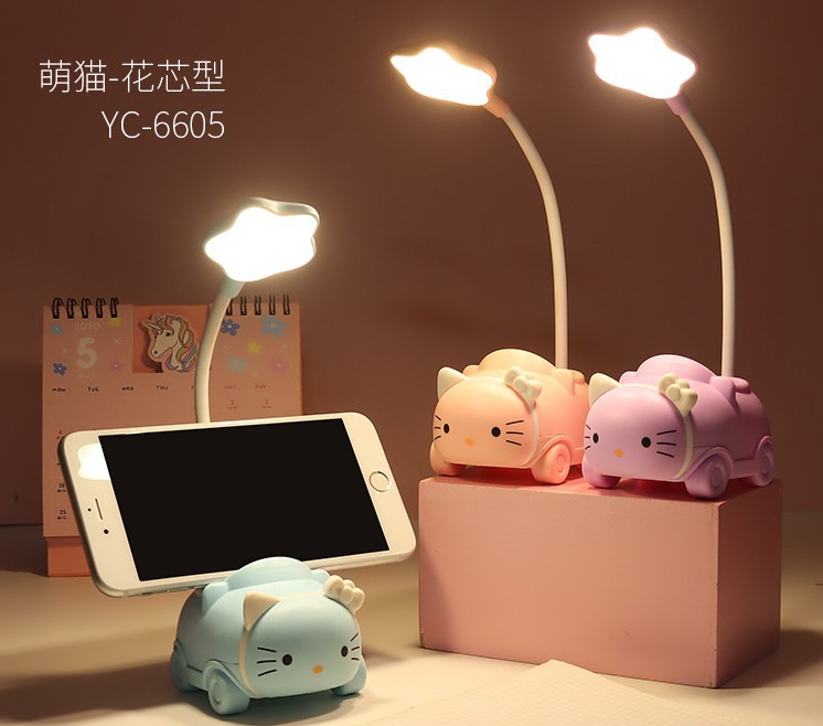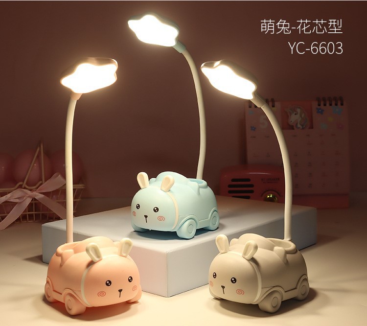 萌宠卡通汽车小台灯笔筒usb充电LED小夜灯手机支架儿童幼儿园礼品