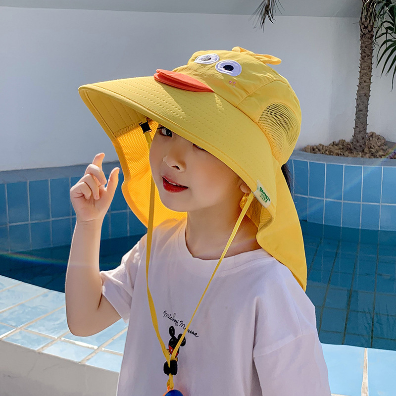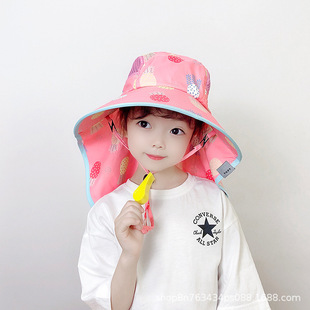 夏季儿童帽子遮阳帽户外防紫外线护颈男可爱女渔夫帽新款透气防晒