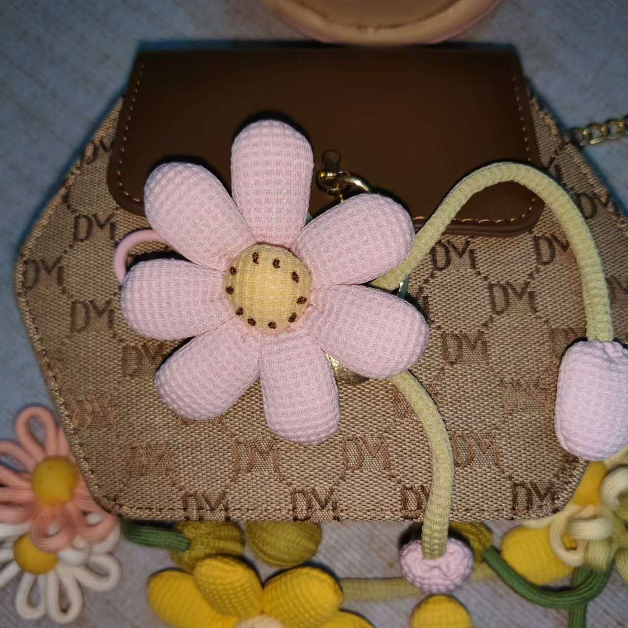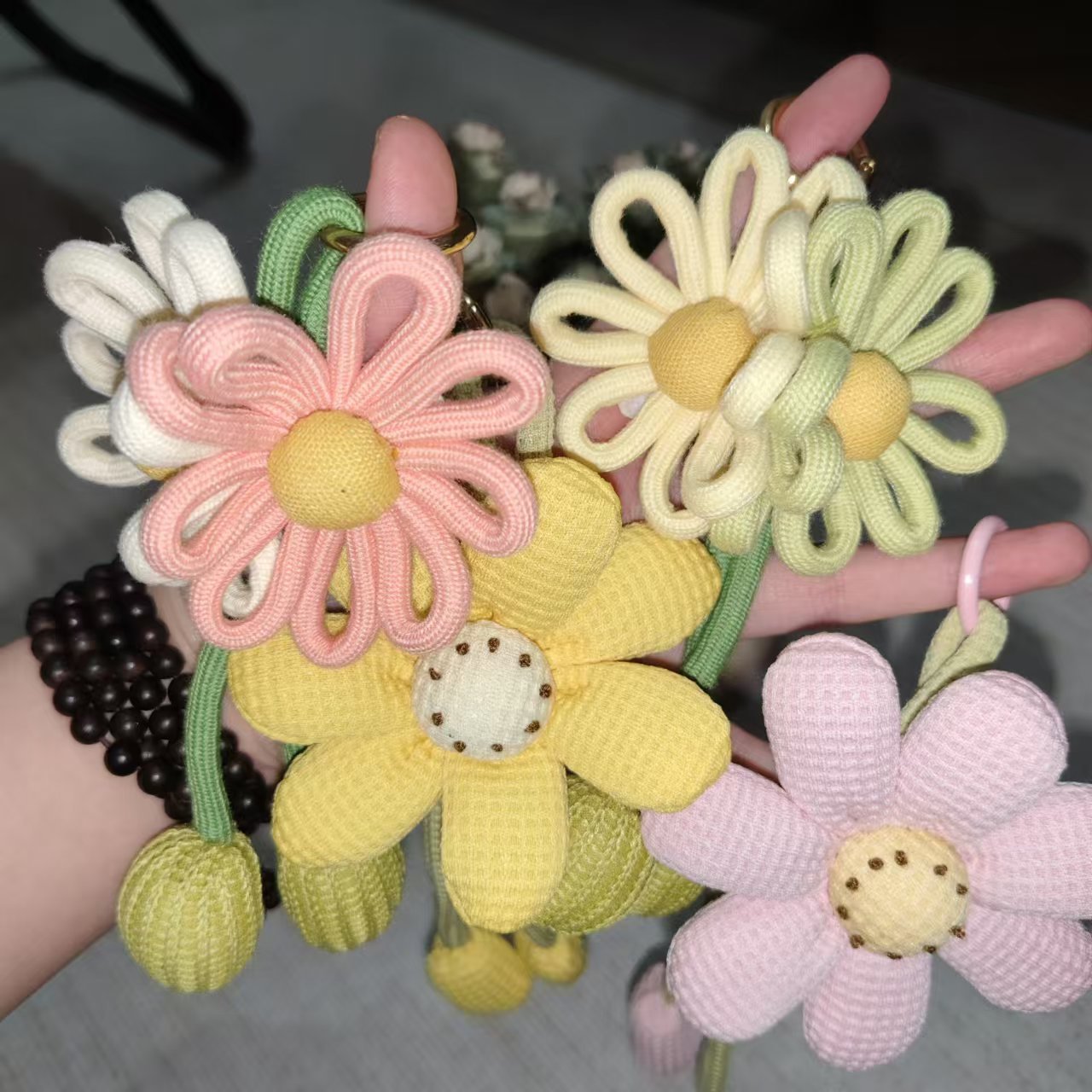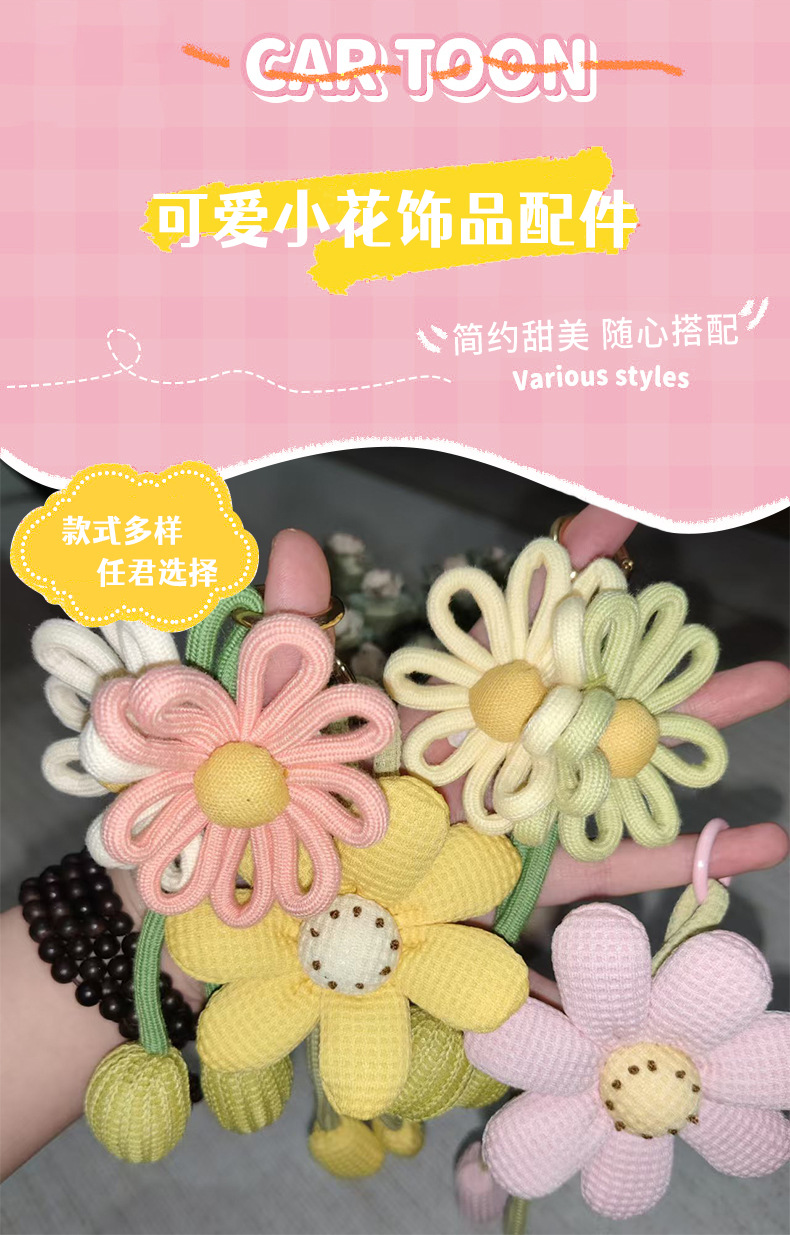 可爱太阳花挂件 手工编制宝宝挂饰 毛线编织菊花朵钥匙扣配饰批发