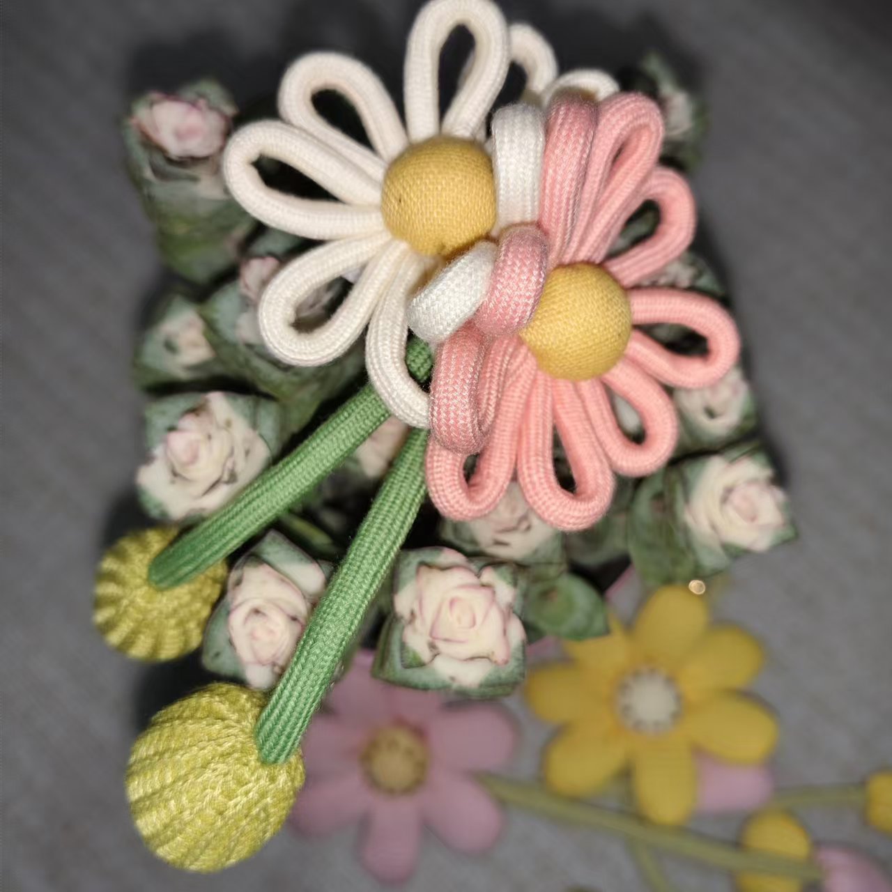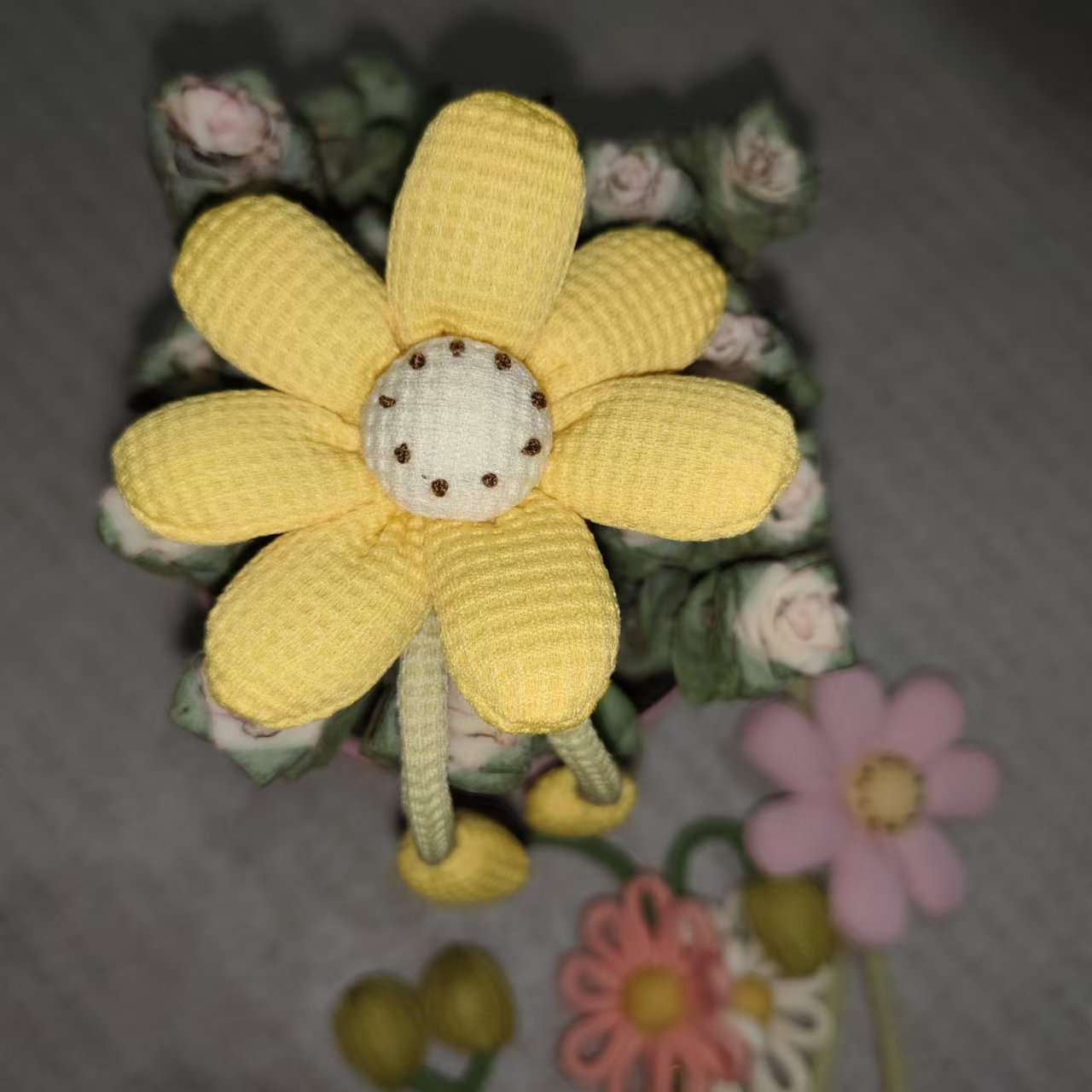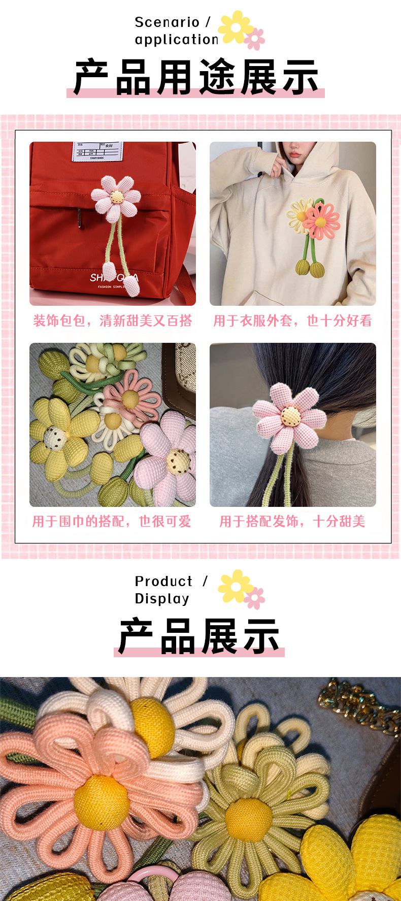 可爱太阳花挂件 手工编制宝宝挂饰 毛线编织菊花朵钥匙扣配饰批发