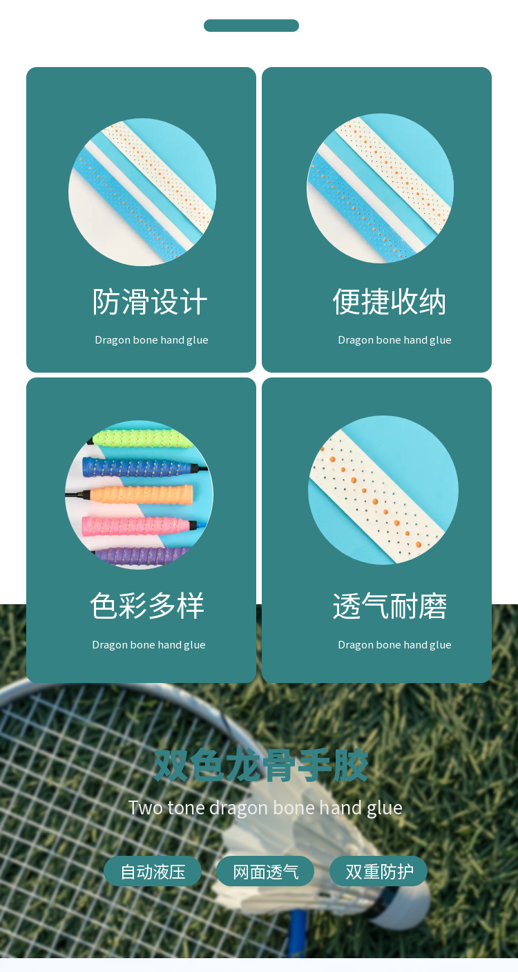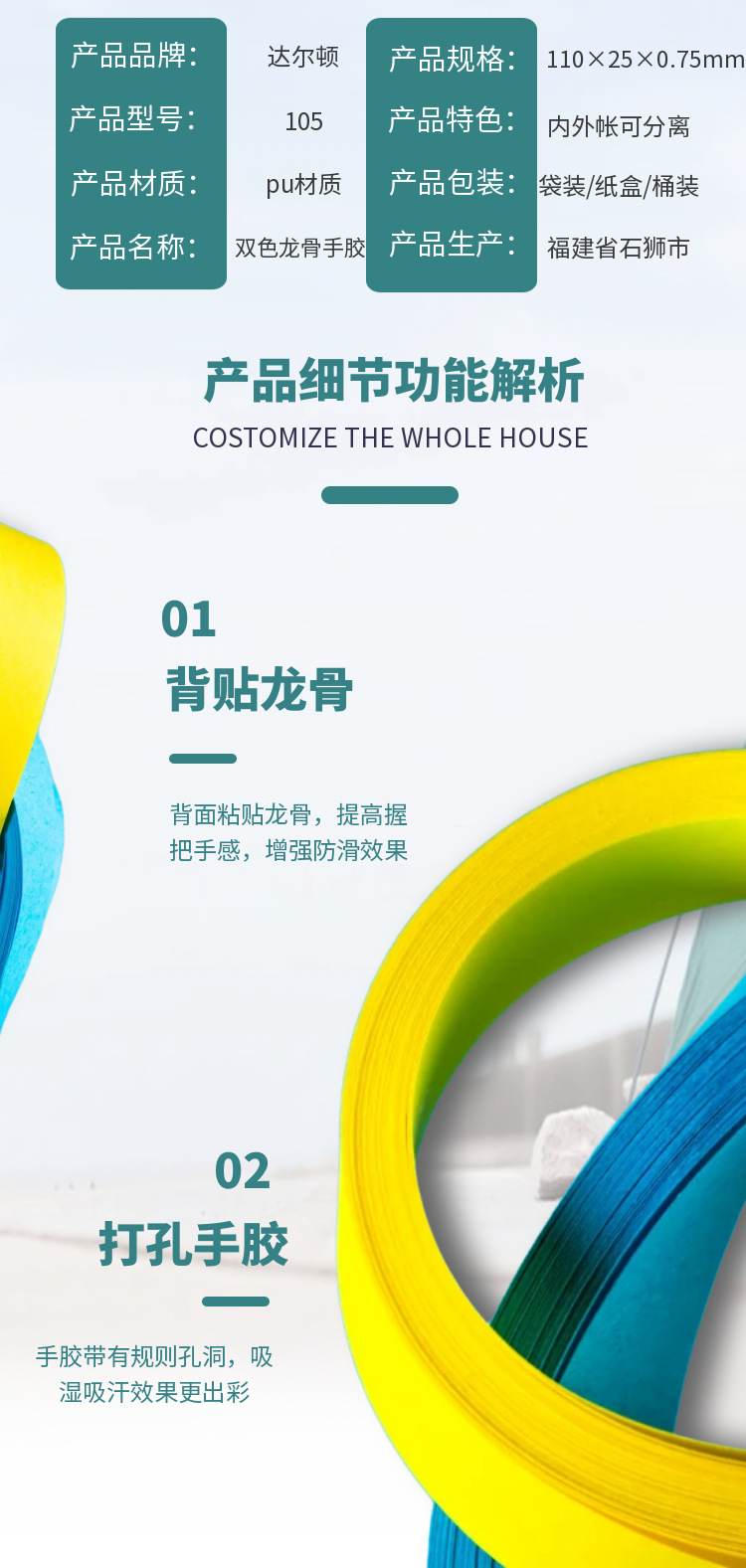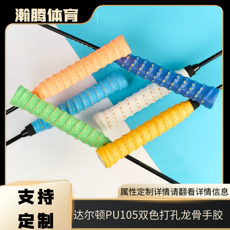 透气耐磨手胶达尔顿pu105双色打孔龙骨手胶羽毛球网球拍2色吸汗带