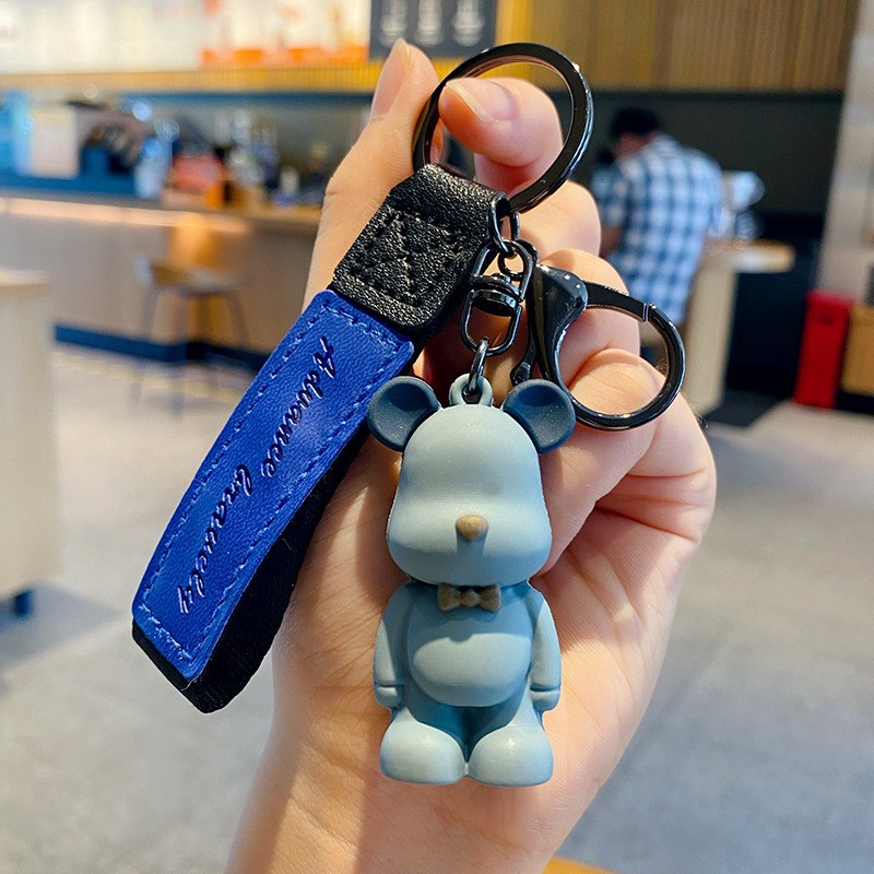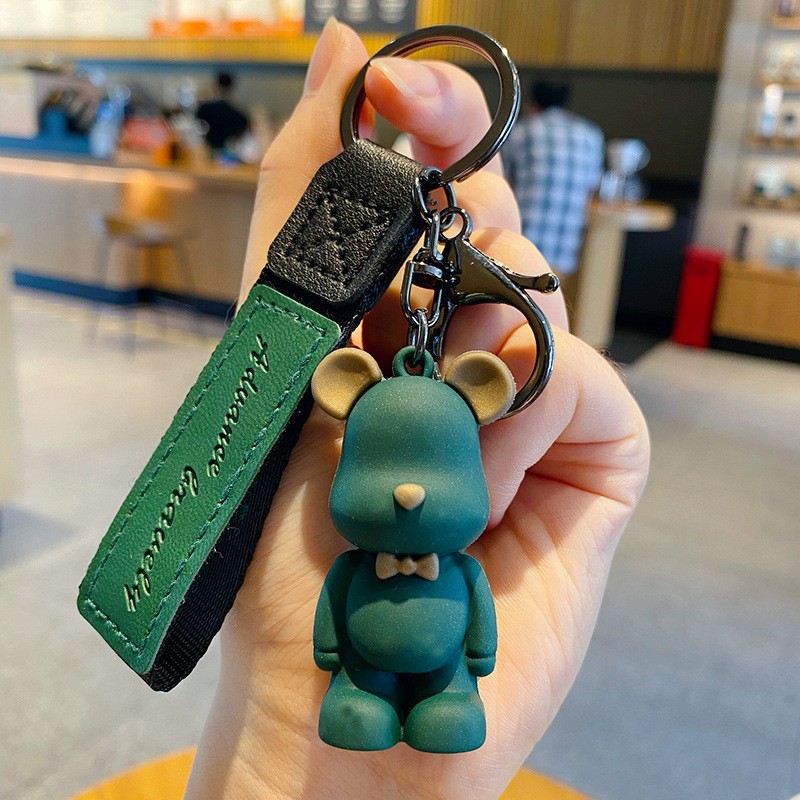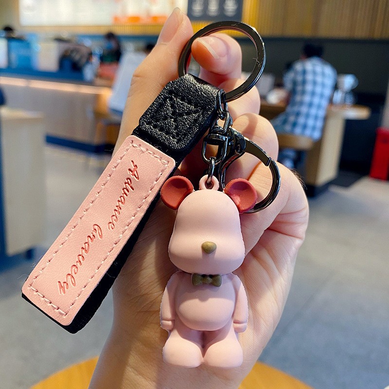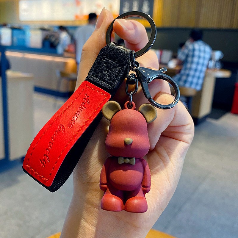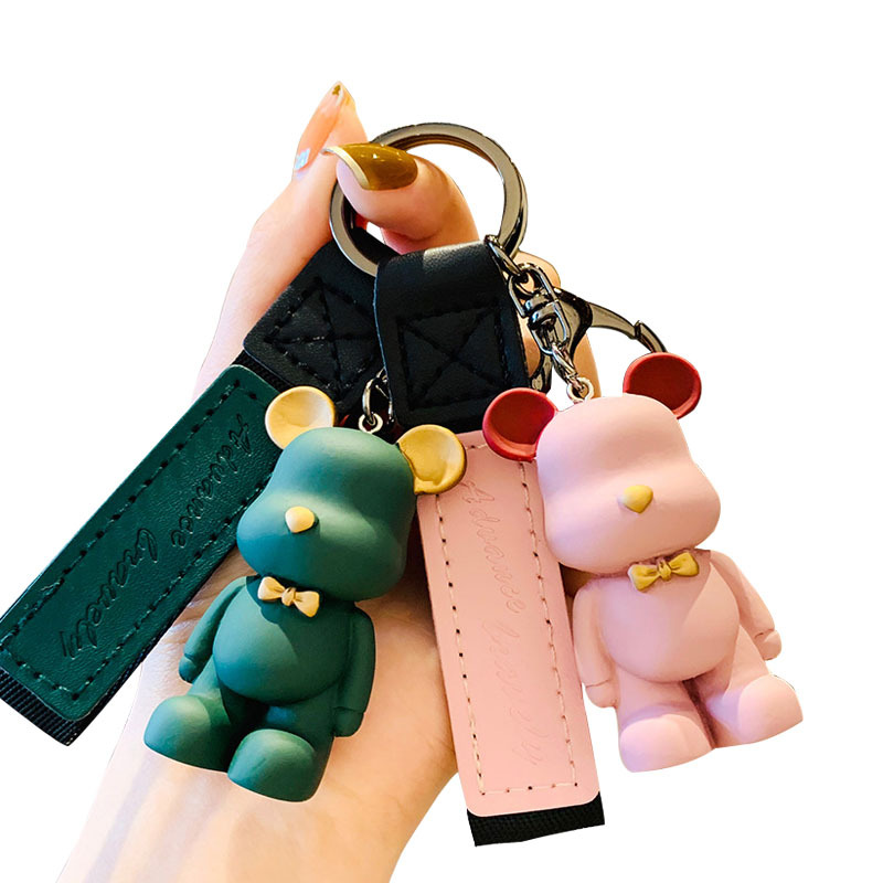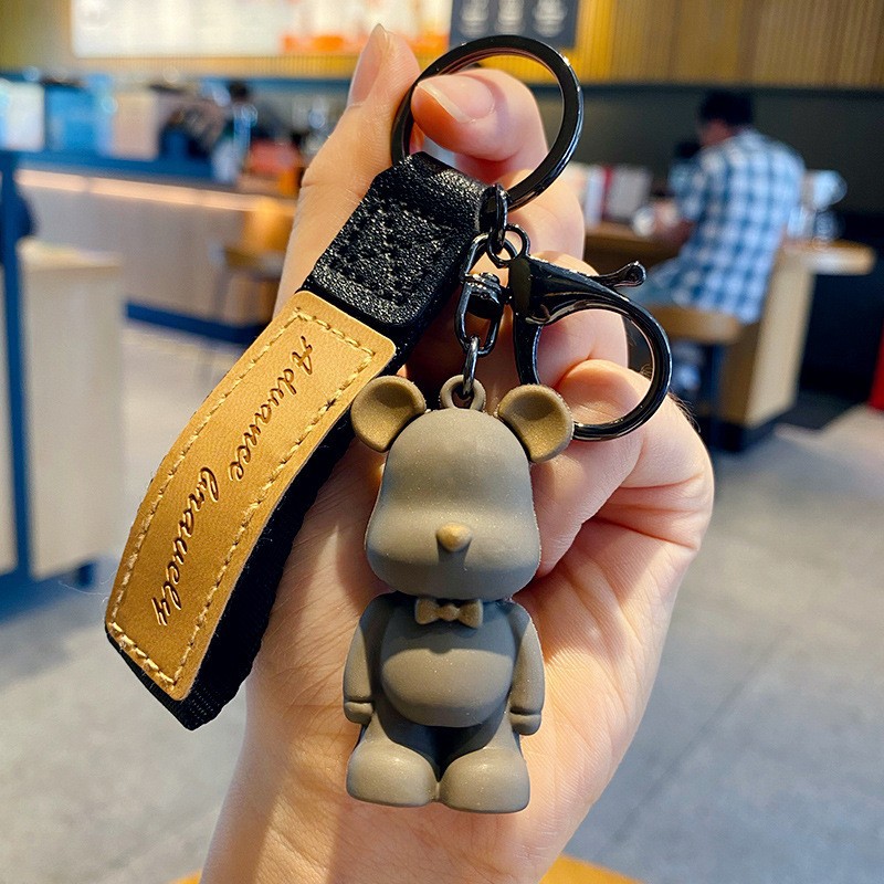 创意可爱领结暴力熊钥匙扣北欧风编织手带汽车钥匙挂件包包挂饰
