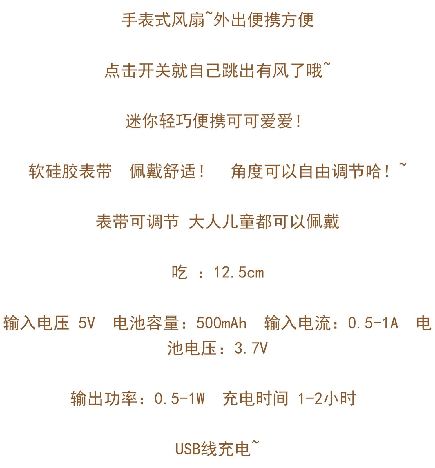 手表风扇usb充电大风力静音可爱卡通学生便携式迷你手腕式小风扇