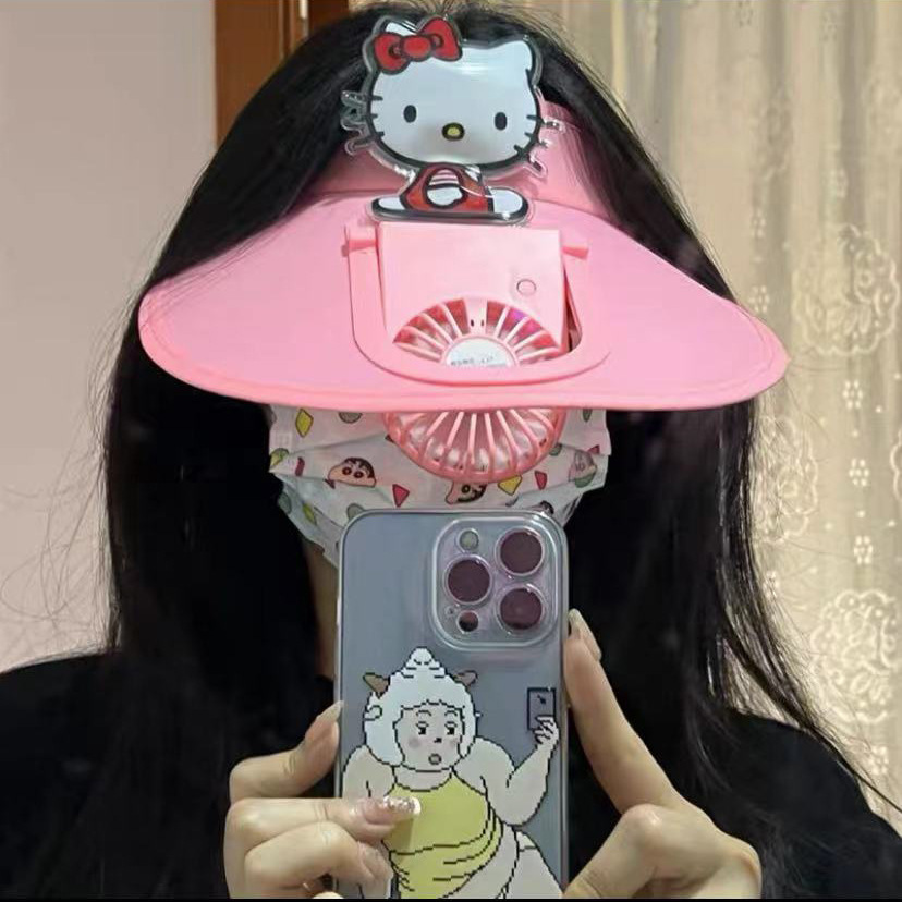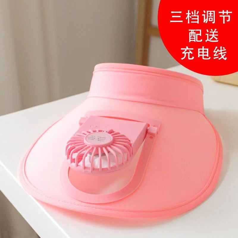 夏季防晒大帽檐空顶遮阳帽USB充电风扇户外防紫外线可调节太阳帽