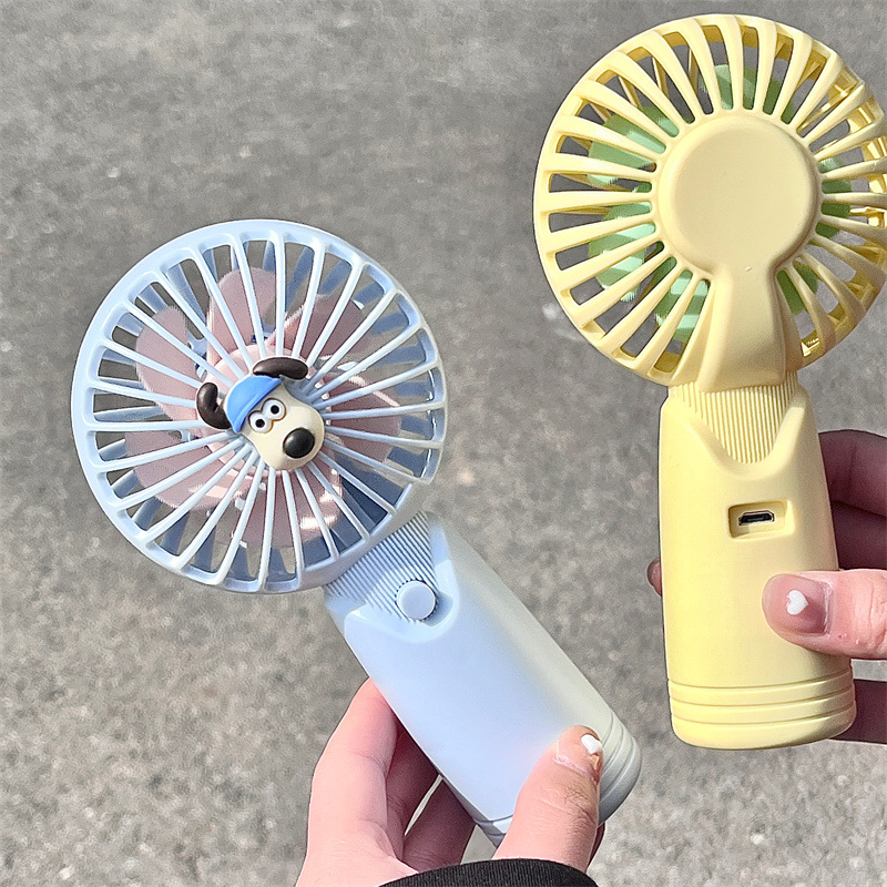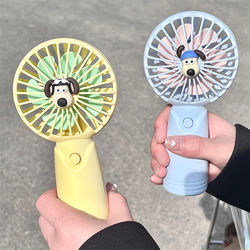可爱少女心掌门狗手持小风扇usb充电大风力学生上课静音桌面风扇
